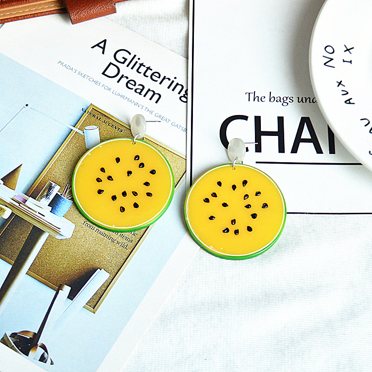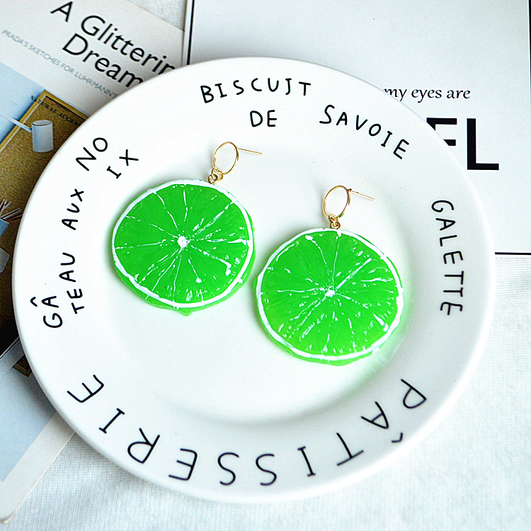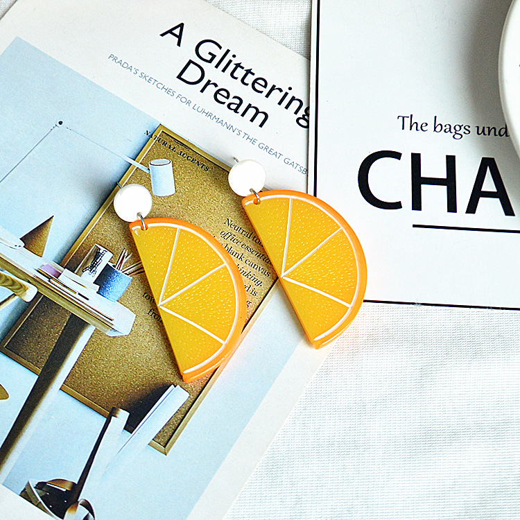 日韩甜美女生夸张饰品可爱卡通水果耳饰夏日个性仿真桔子柠檬耳环