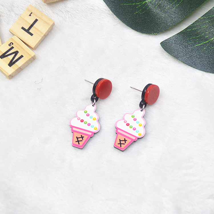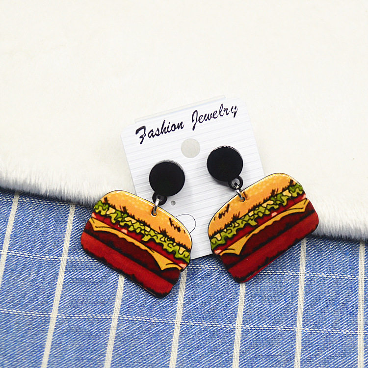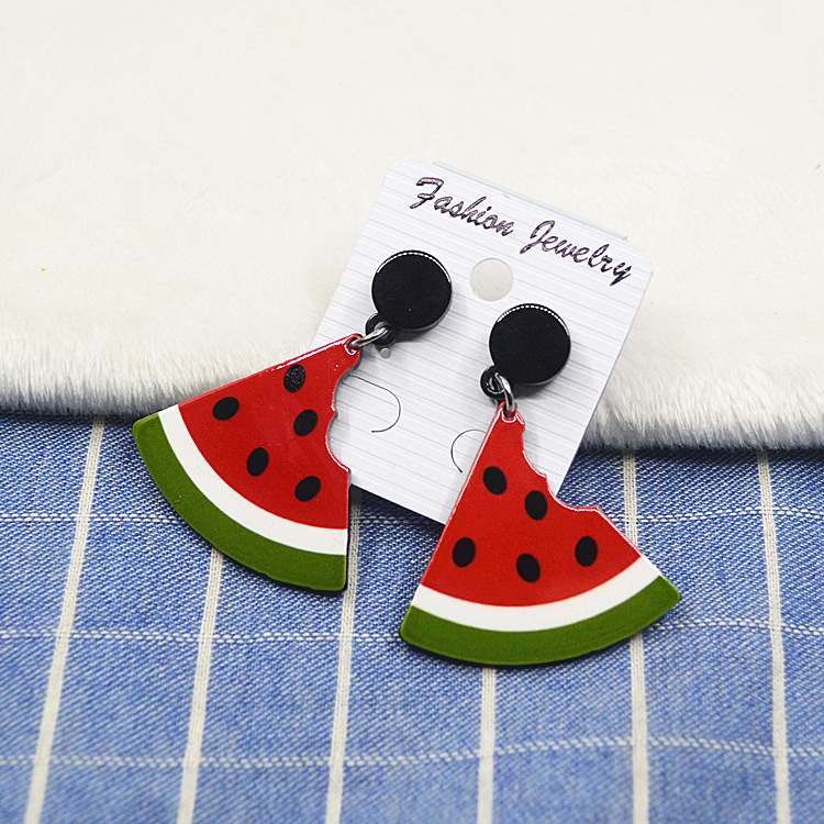 原宿卡通时尚耳钉女气质个性亚克力水果食物夏日长款西瓜耳环耳坠