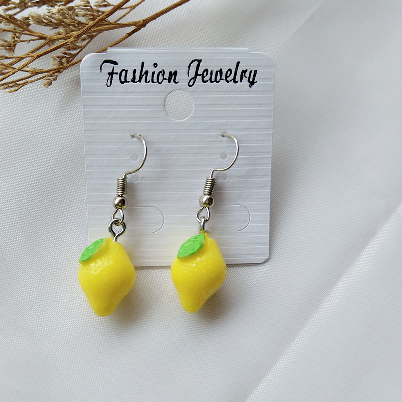韩版甜美创意女生饰品可爱卡通水果耳饰夏日个性仿真桔子柠檬耳环