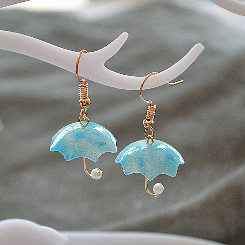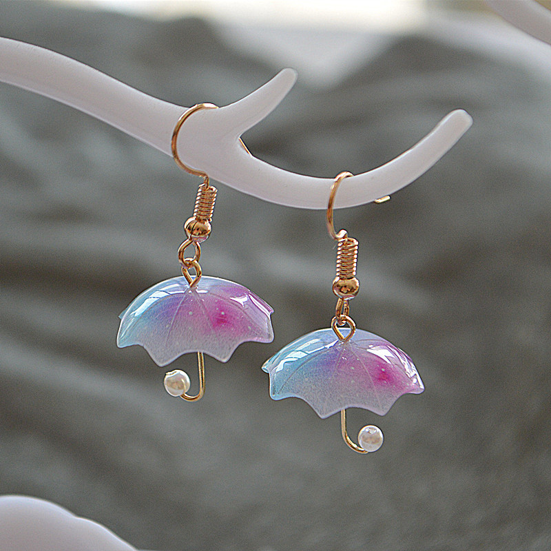 迷你创意仿真雨伞耳饰个性民族风立体撞色彩色太阳伞气质珍珠耳坠