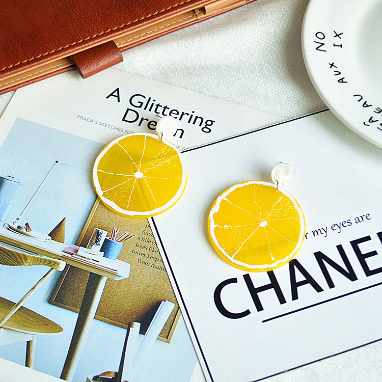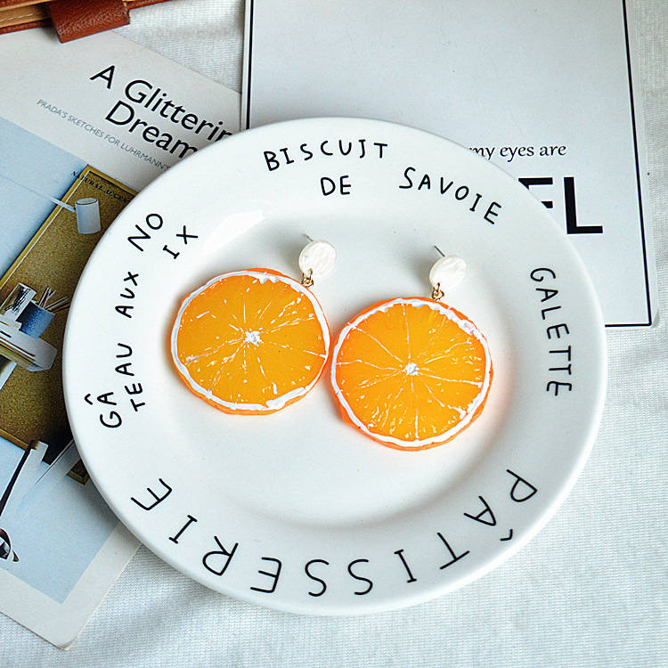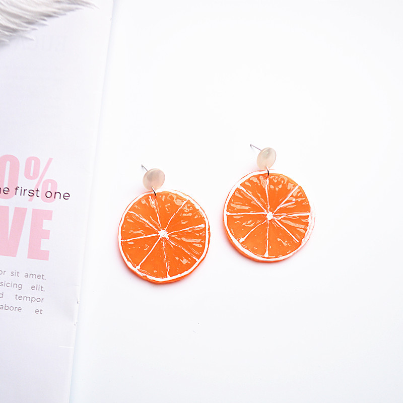 日韩甜美女生夸张饰品可爱卡通水果耳饰夏日个性仿真桔子柠檬耳环