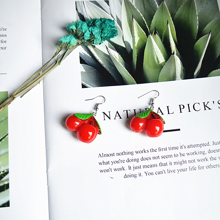 日韩原宿水果耳环卡通仿真趣味个性甜美夏季新款樱桃草莓耳饰耳钉