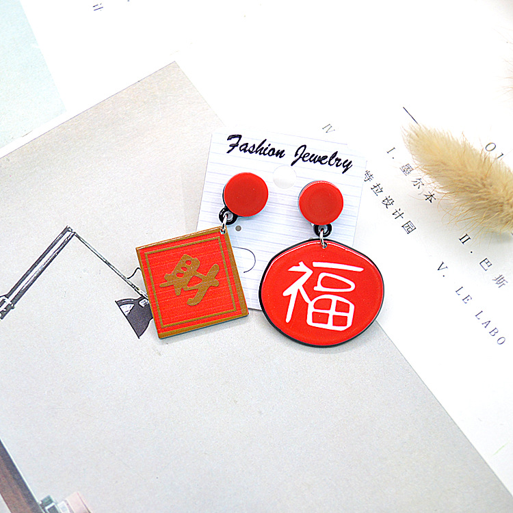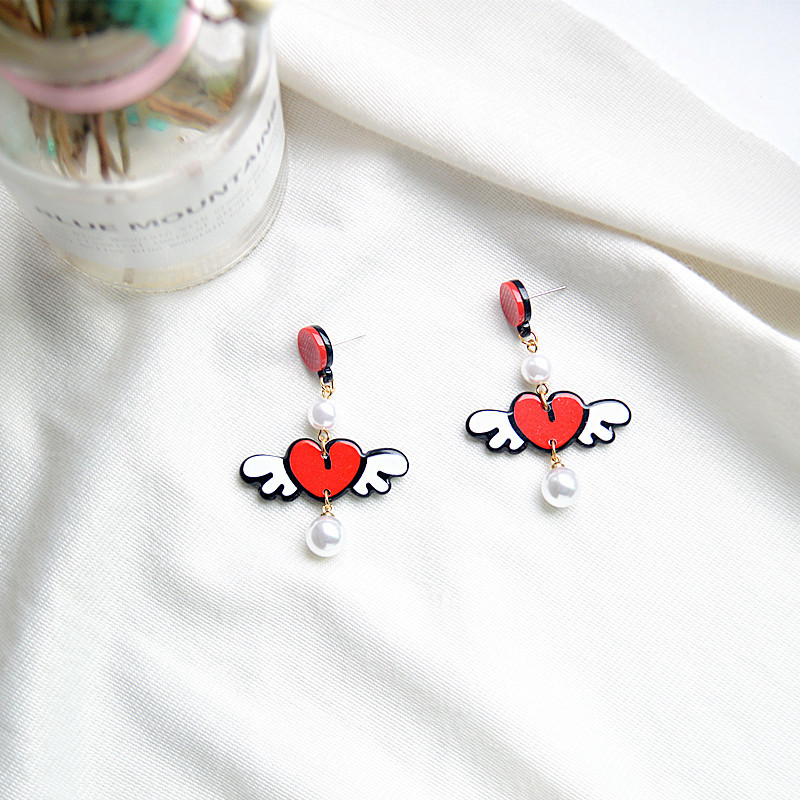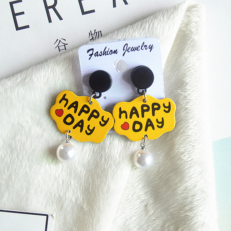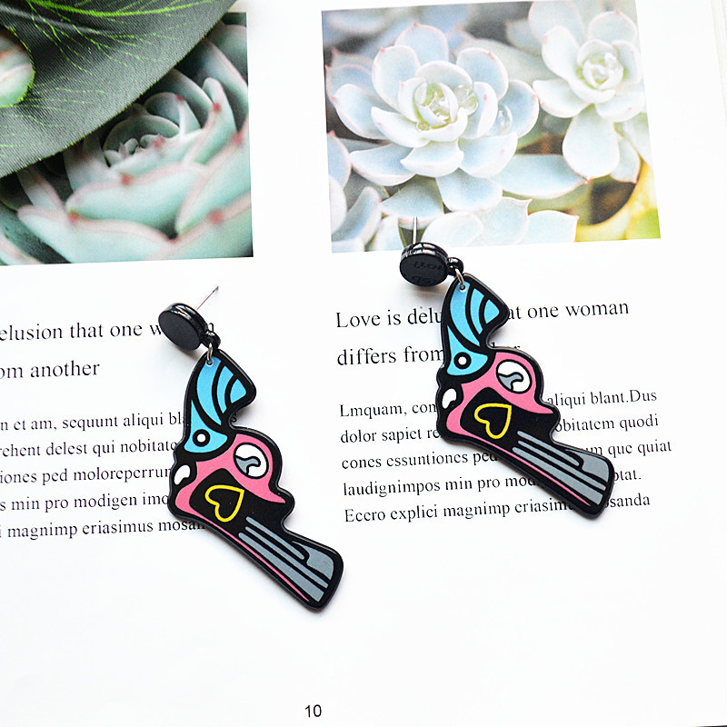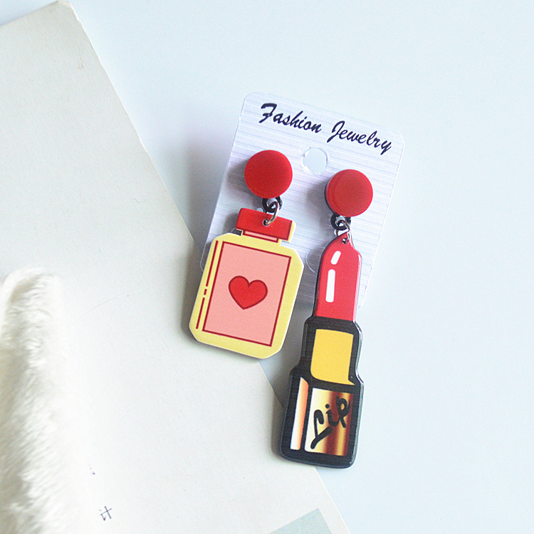 时尚卡通韩版潮女趣味亚克力不对称个性口红爱心字母长款耳环耳钉
