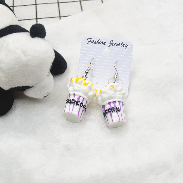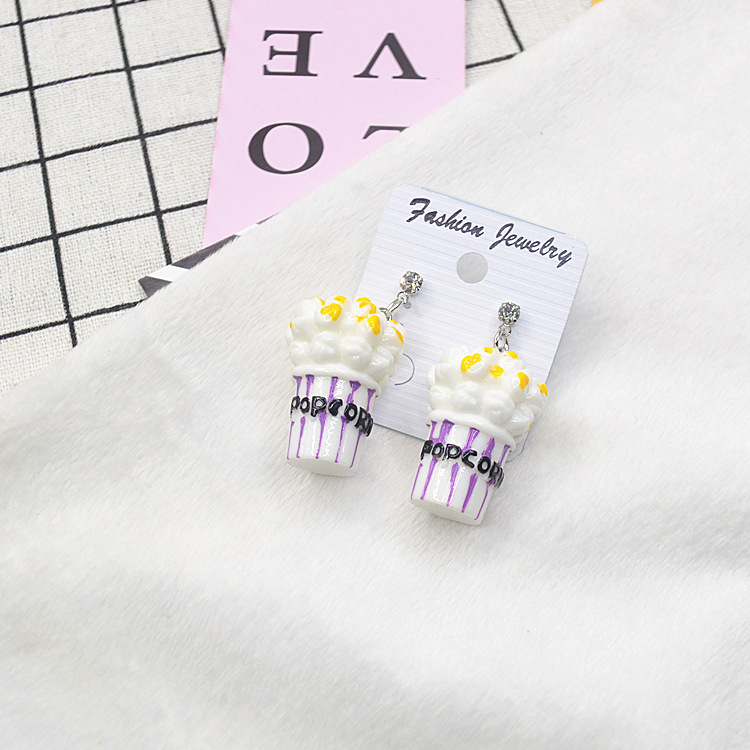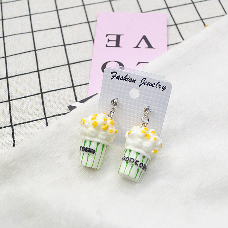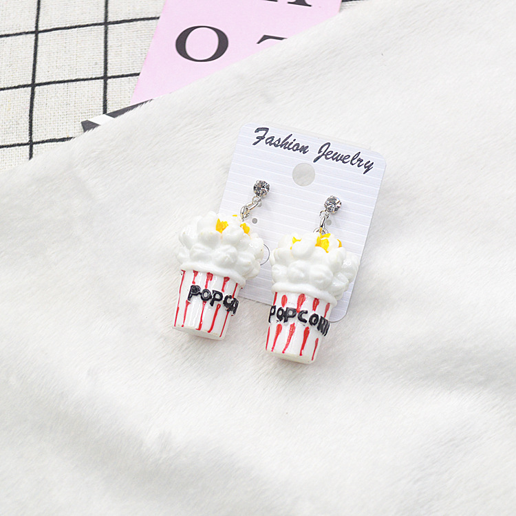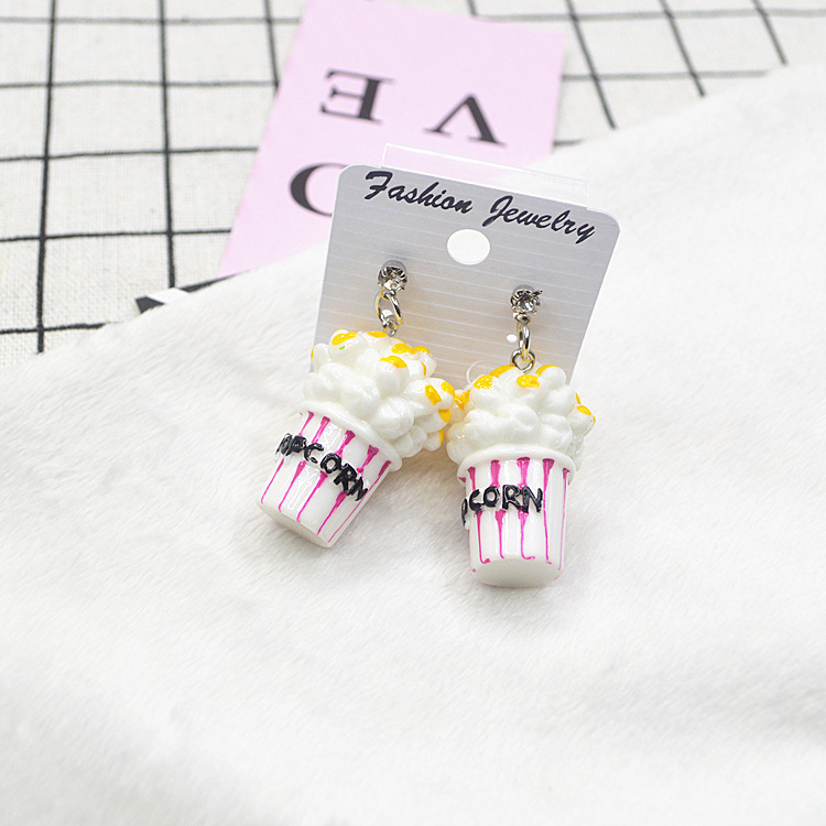 日韩新款耳环卡通原宿可爱时尚个性潮女仿真爆米花耳钩耳环耳坠