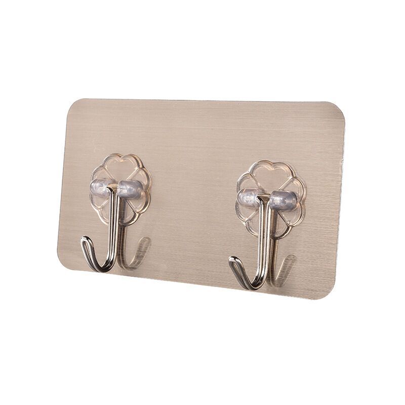 厨卫不锈钢双挂钩无痕拉丝灰浴室衣服双排钩免钉粘钩跨境外贸货源