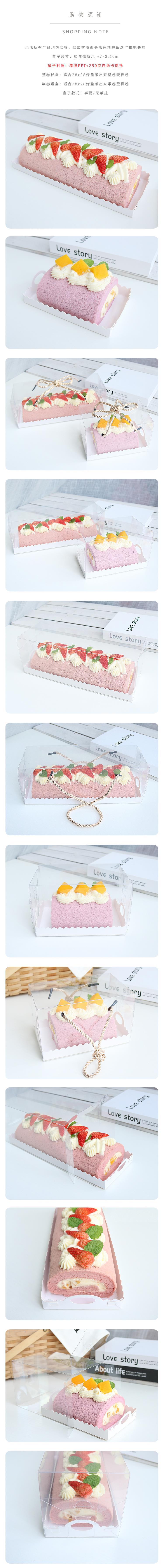 手提透明梦龙蛋糕卷包装盒抱抱卷毛巾卷包装盒28*28cm长条蛋糕盒