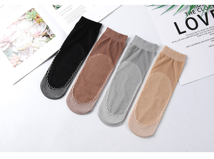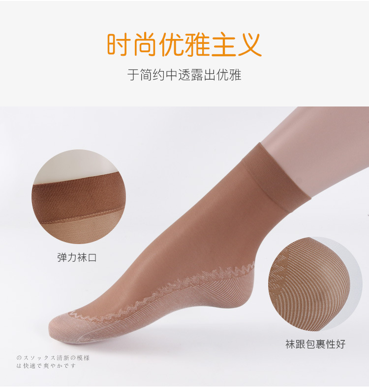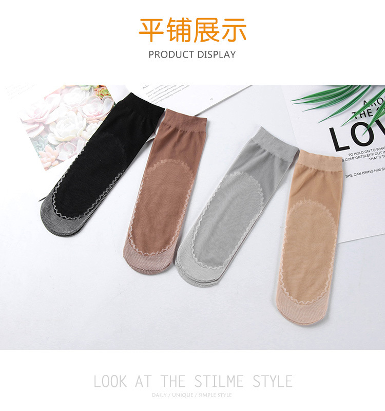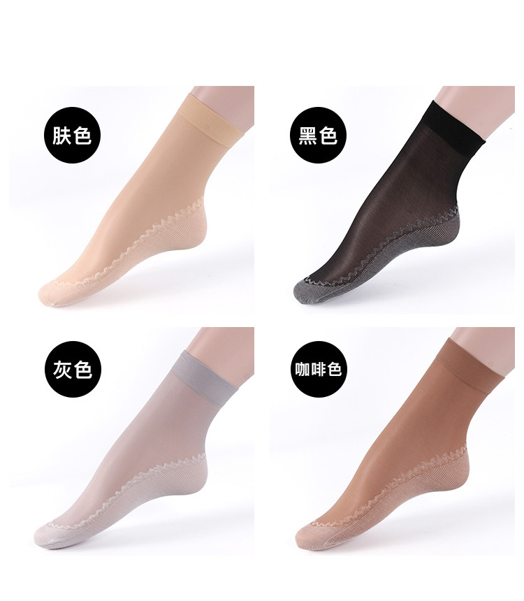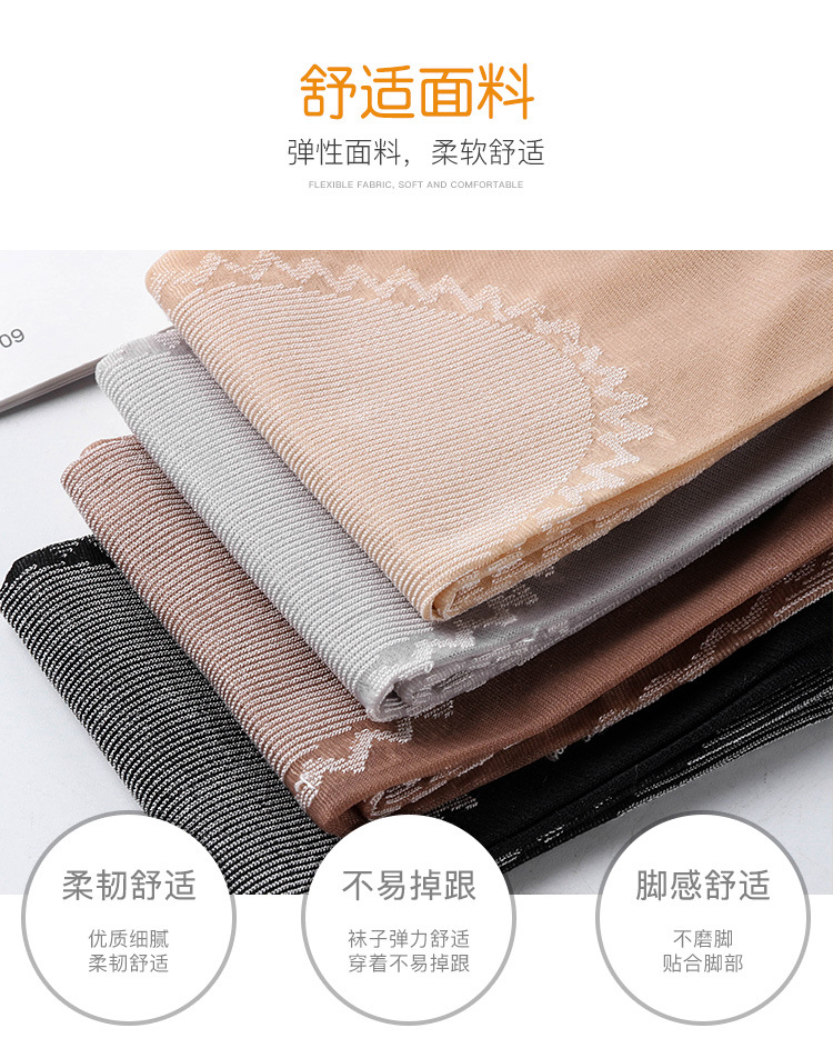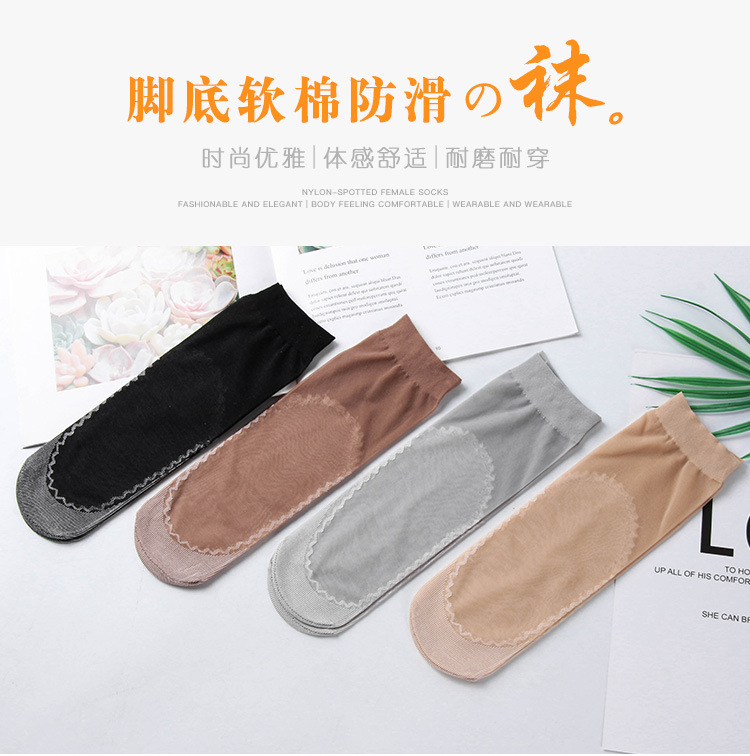 短筒丝袜女薄款水春夏季晶丝肉色防滑棉底丝袜黑色耐磨防勾丝袜子