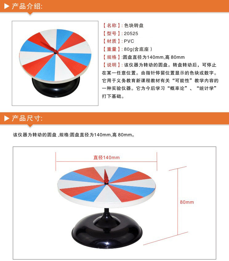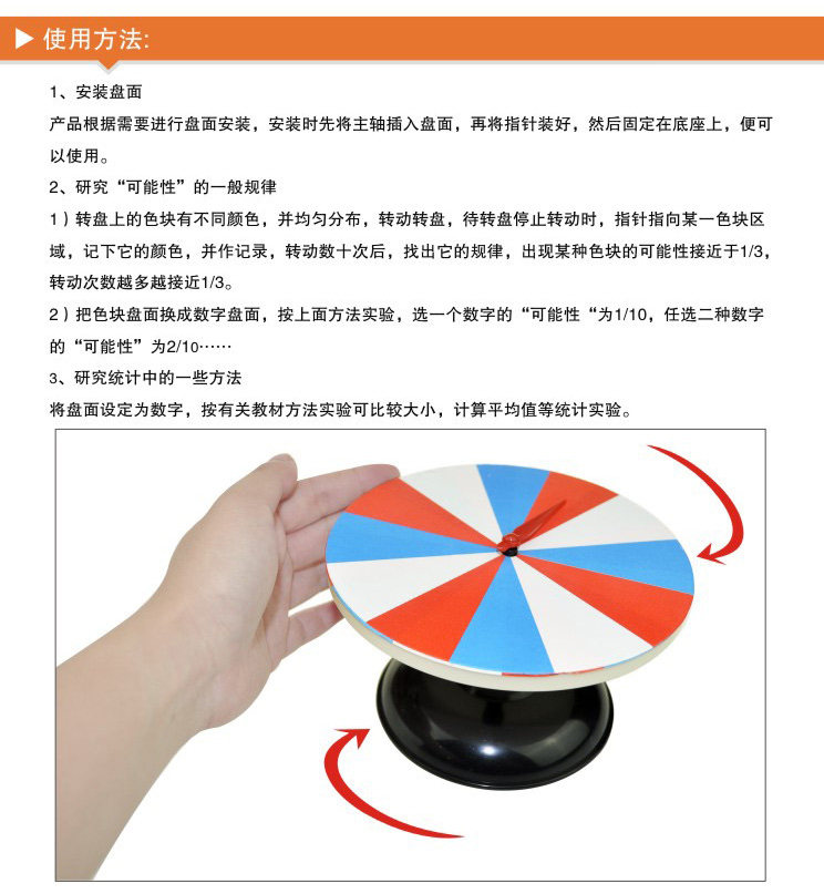 小学数学教具 色块转盘指针式概率演示 幼儿科学实验材料仪器