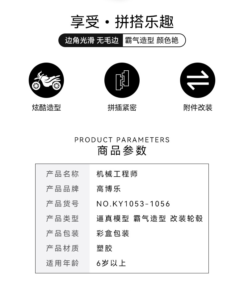 本商品为颗粒拼插类玩具。能拼装成图片中显示的模型。盒内附有详细拼装图解。让宝宝充分发挥想像力,找到更多有趣的组合方法。通过立体形象的拼装还锻炼了动手能力和空间思维能力。对各图形的认识也有所帮助(图片与实物可能有所不同 请以实物为准)