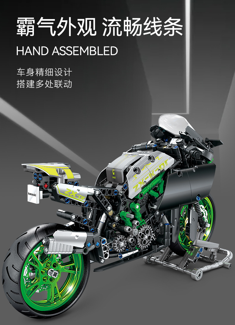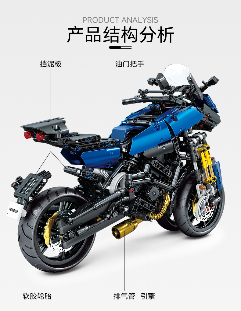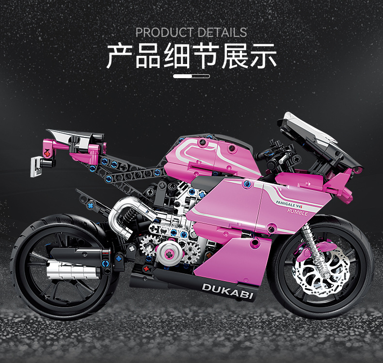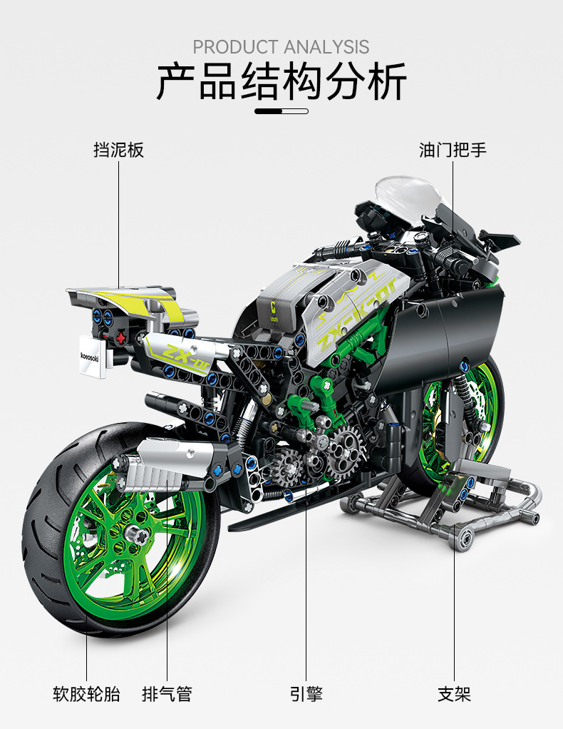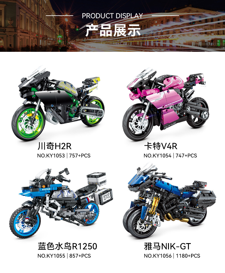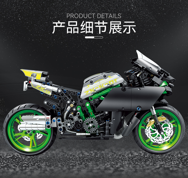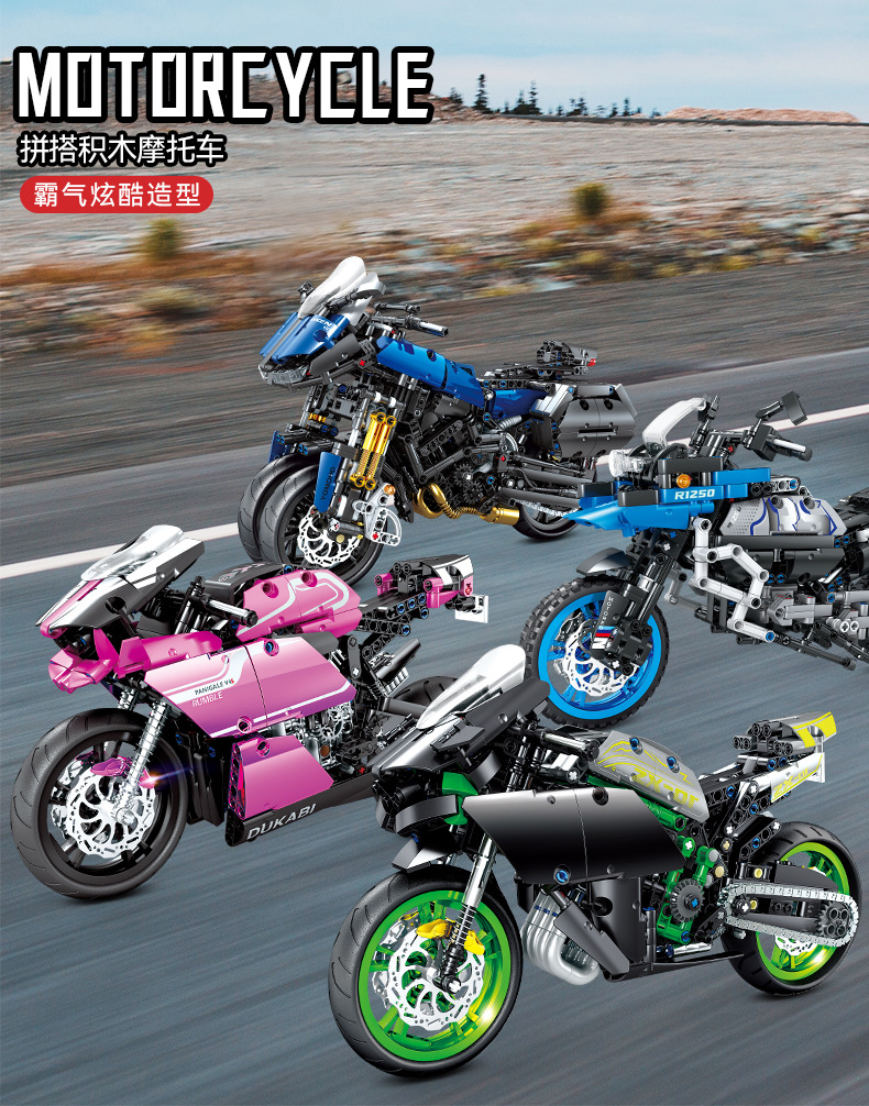 跨境玩具开智积木摩托车赛车跑车拼装模型高难度男孩摩托车礼物