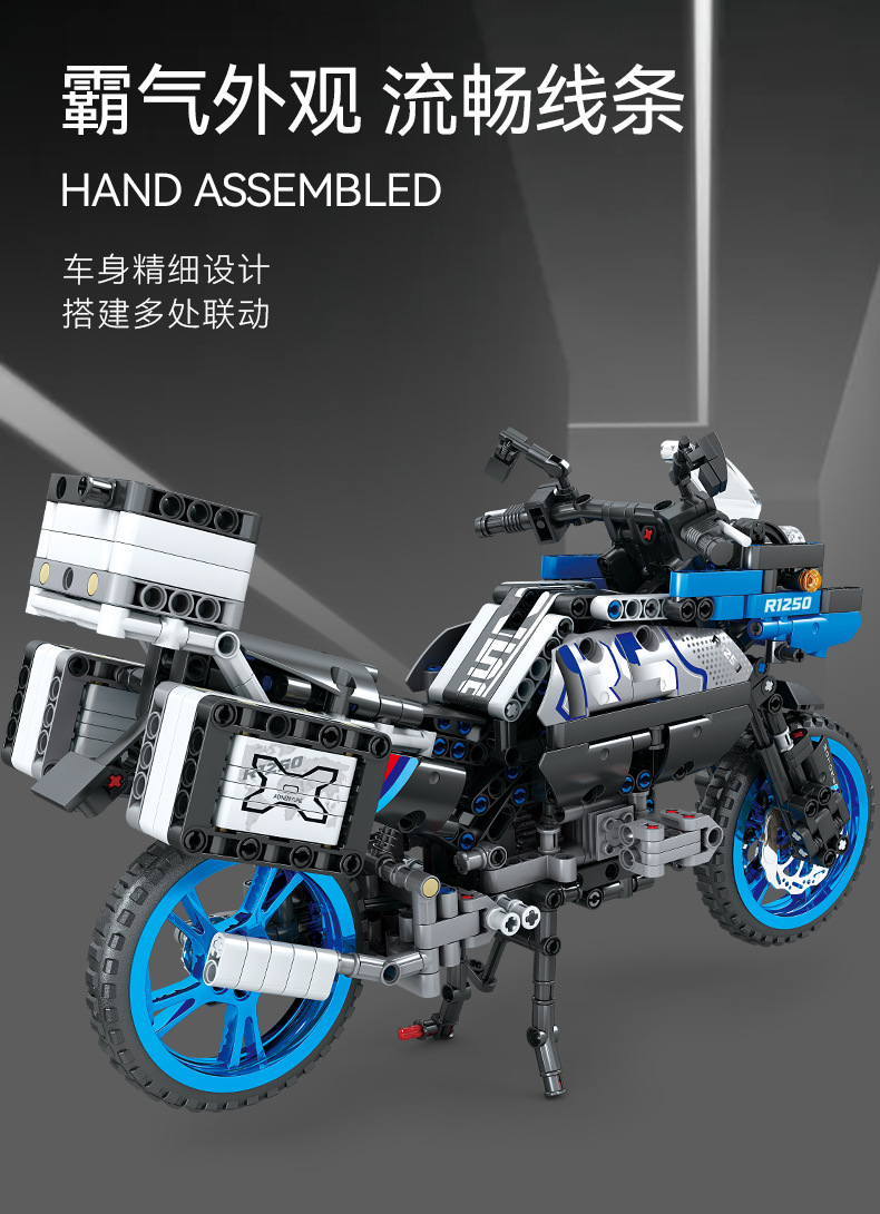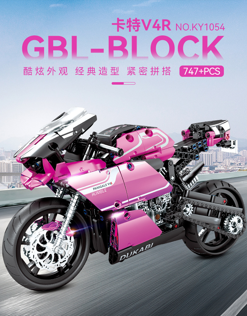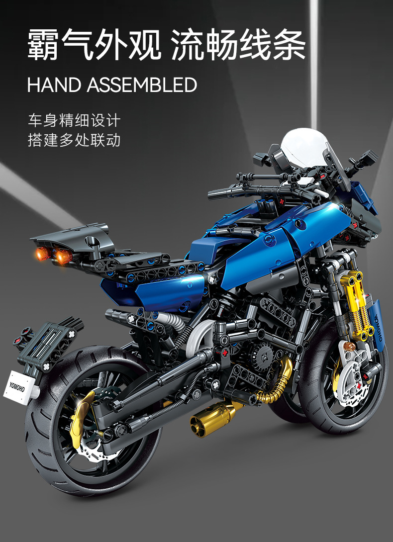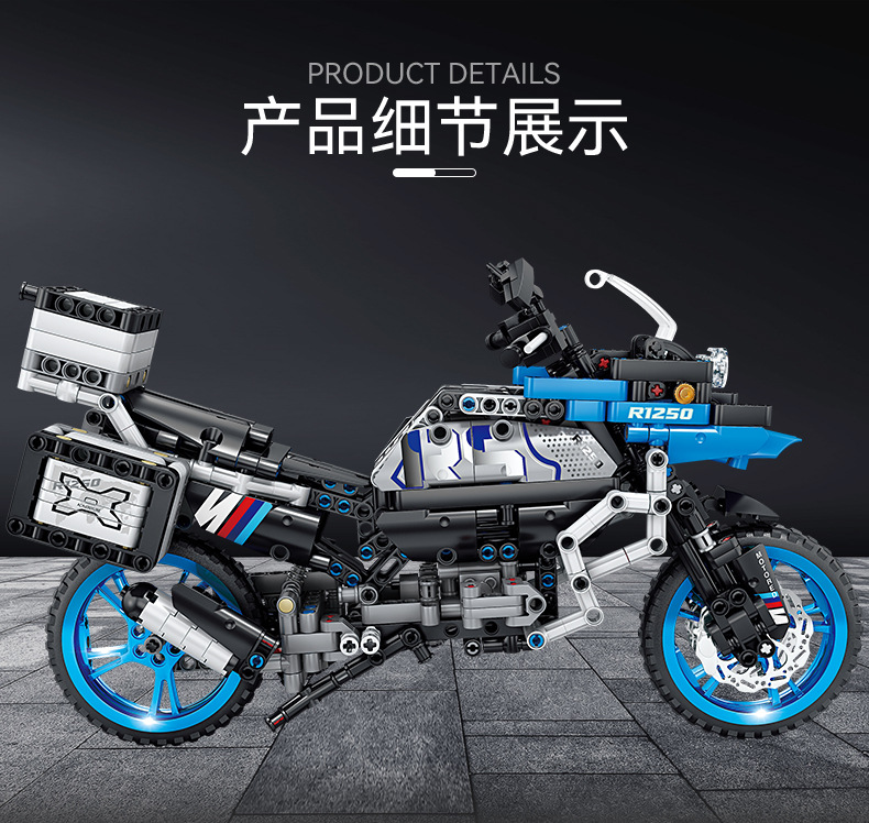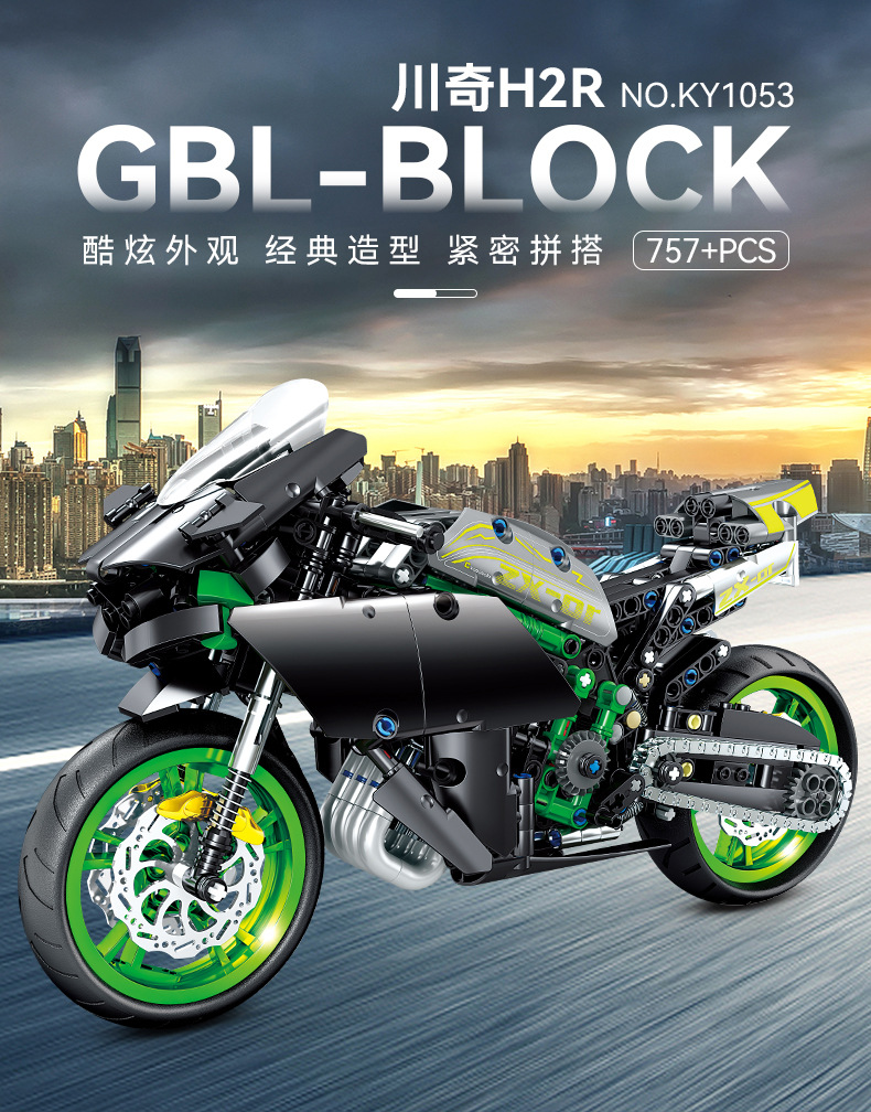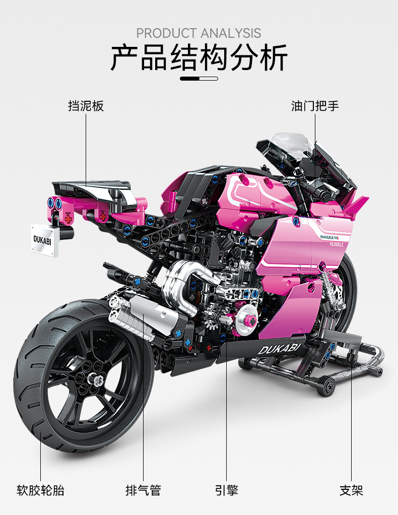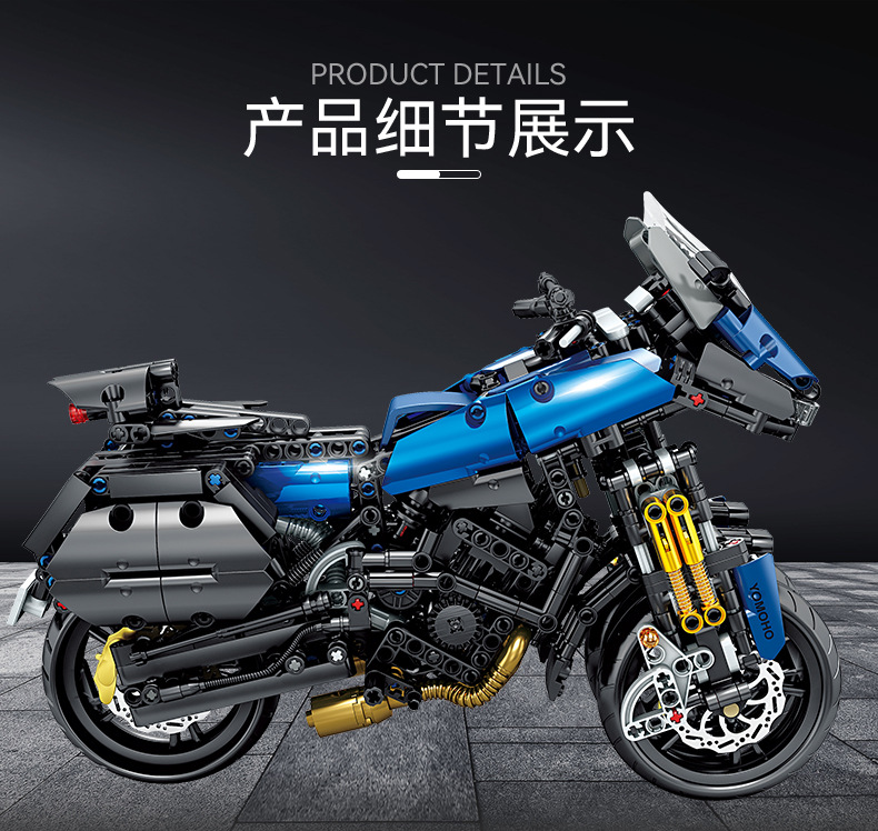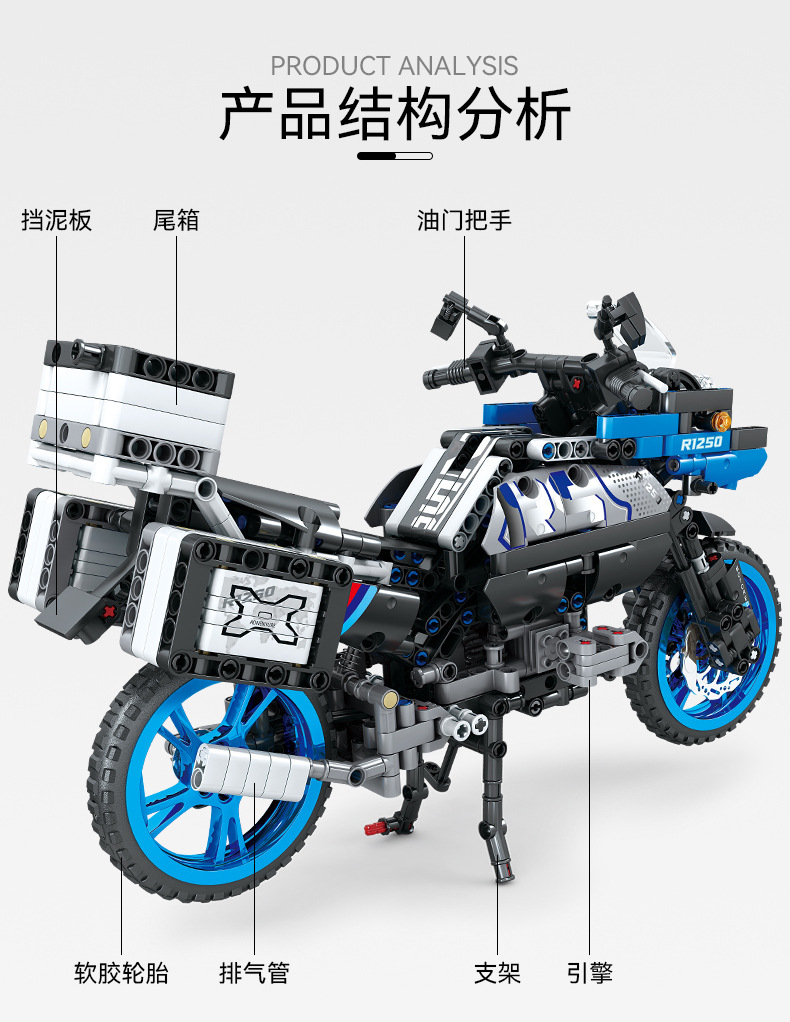 跨境玩具开智积木摩托车赛车跑车拼装模型高难度男孩摩托车礼物