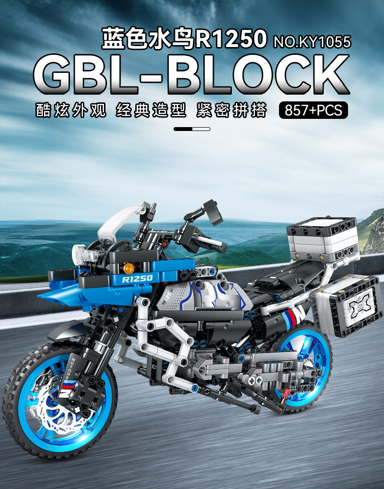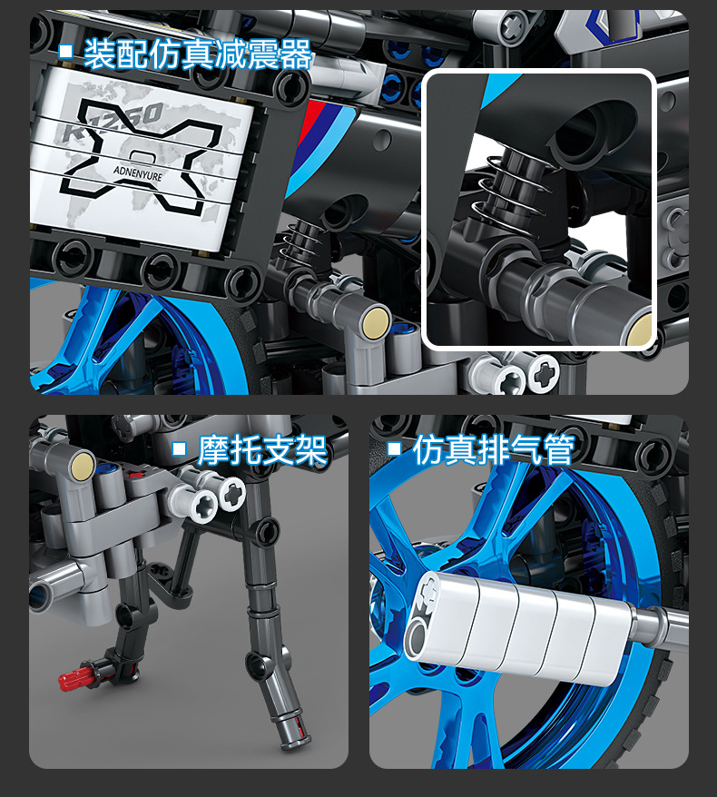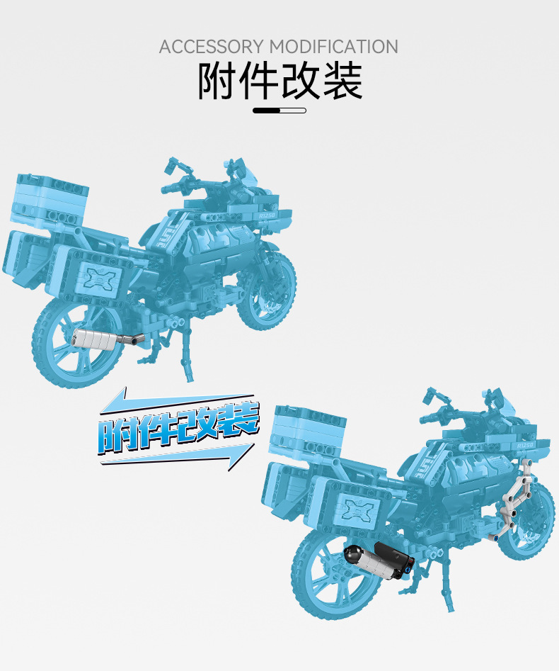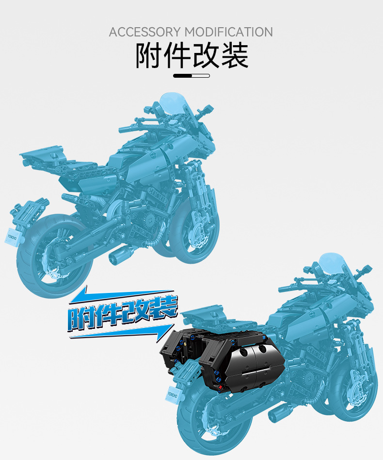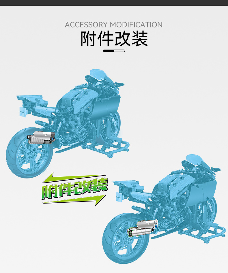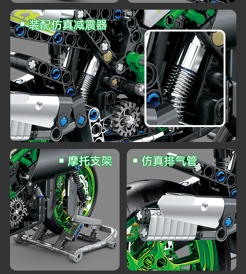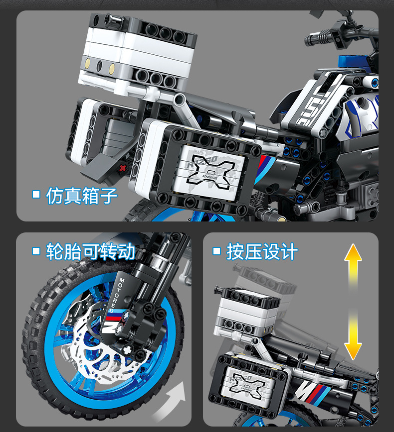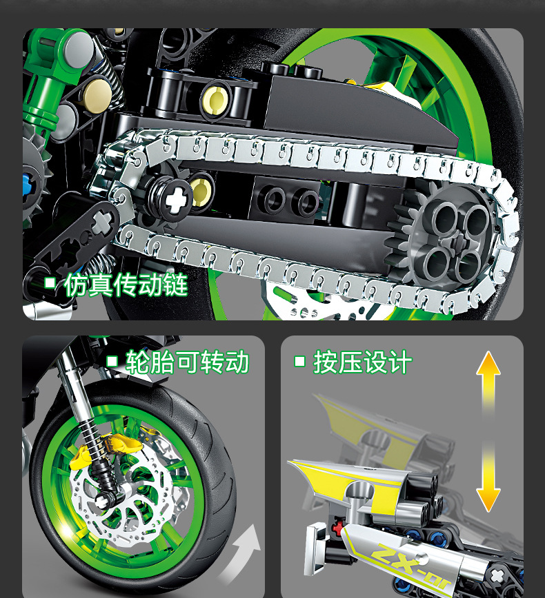 跨境玩具开智积木摩托车赛车跑车拼装模型高难度男孩摩托车礼物