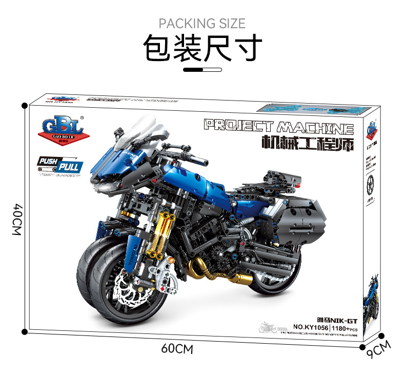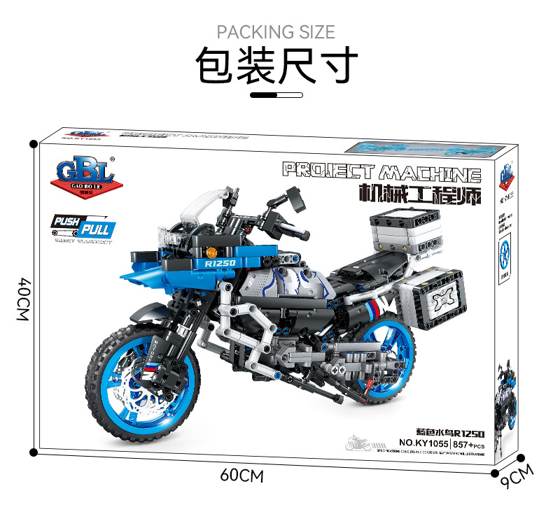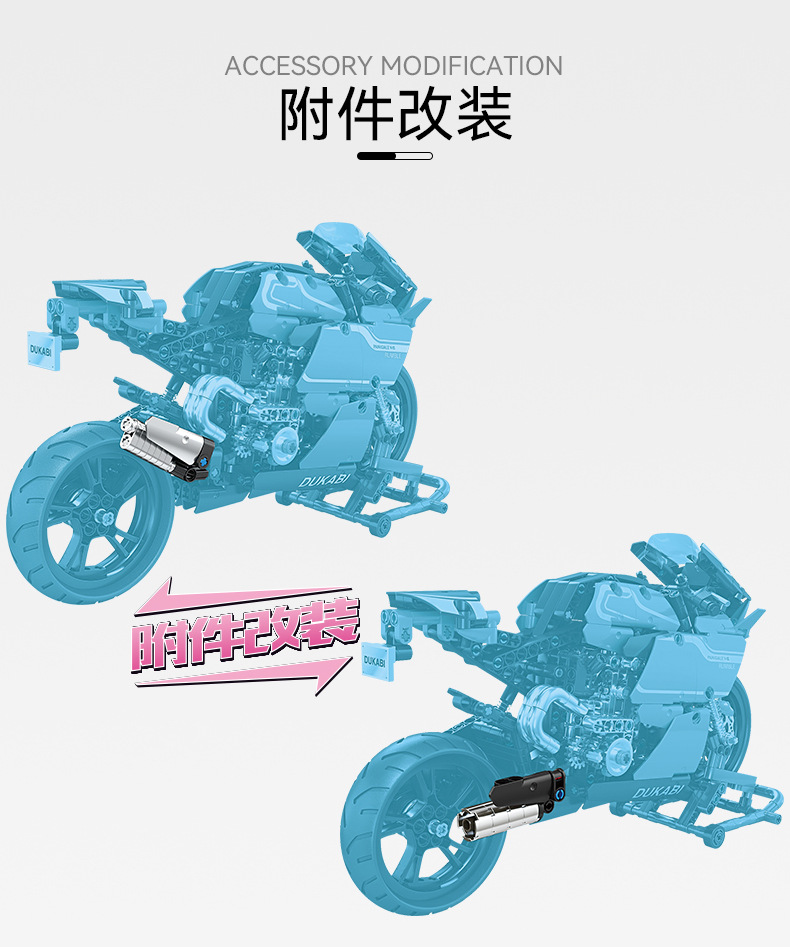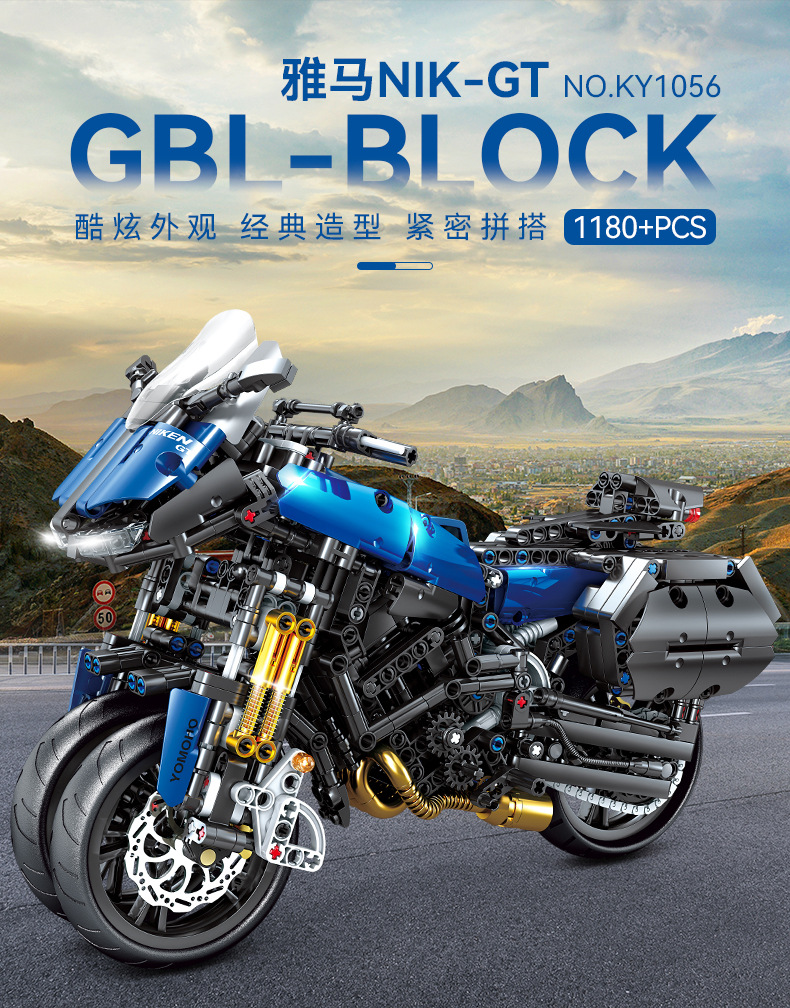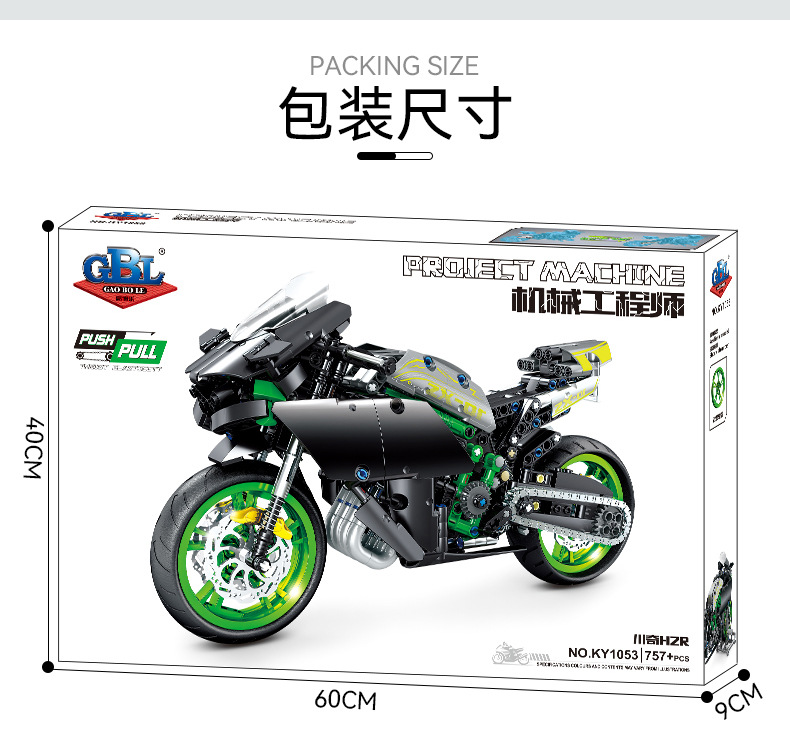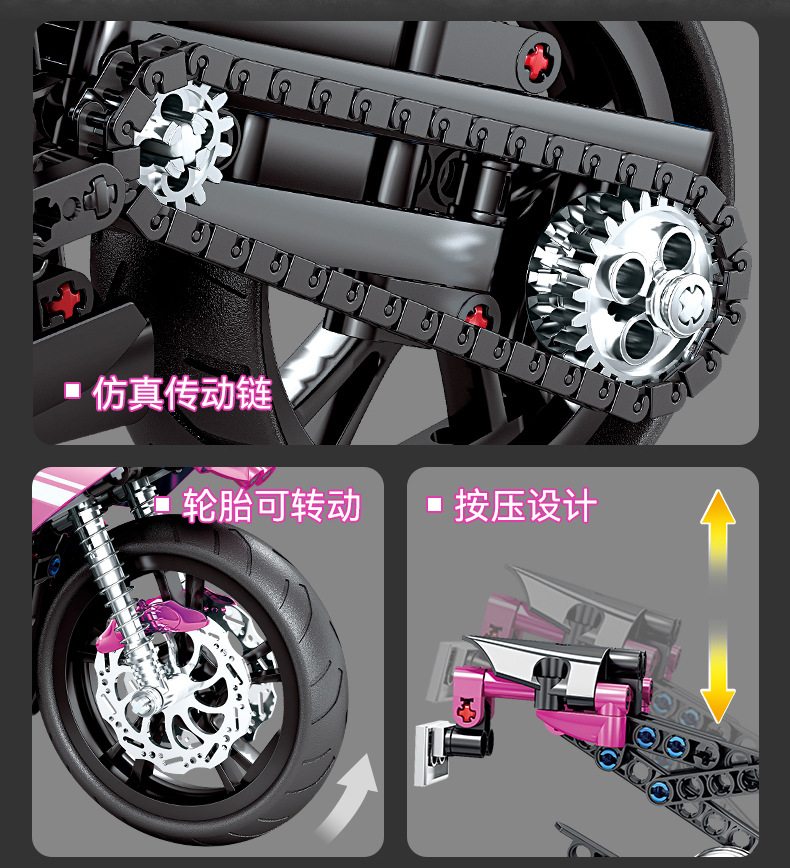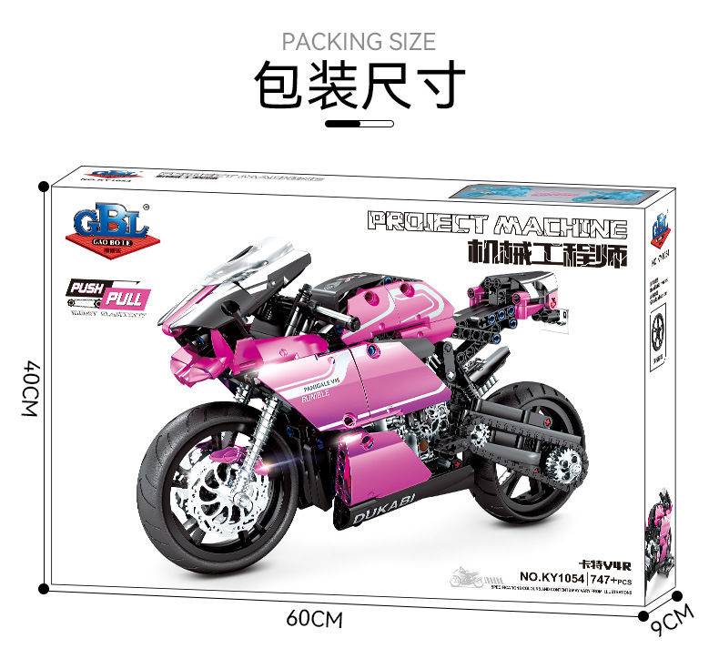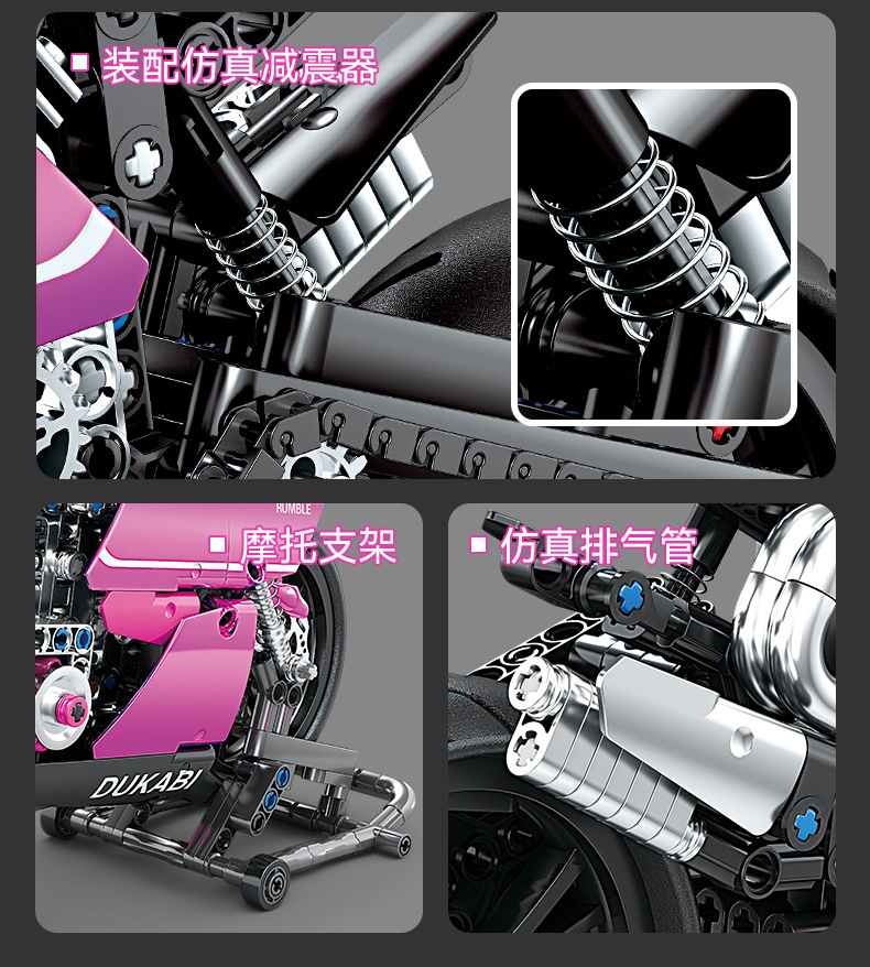 跨境玩具开智积木摩托车赛车跑车拼装模型高难度男孩摩托车礼物