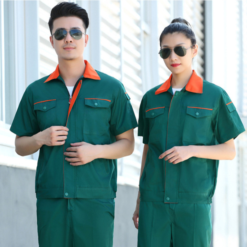 夏季长袖短袖工作服套装物业保洁绿色养护园林绿化劳保服印绣LOGO
