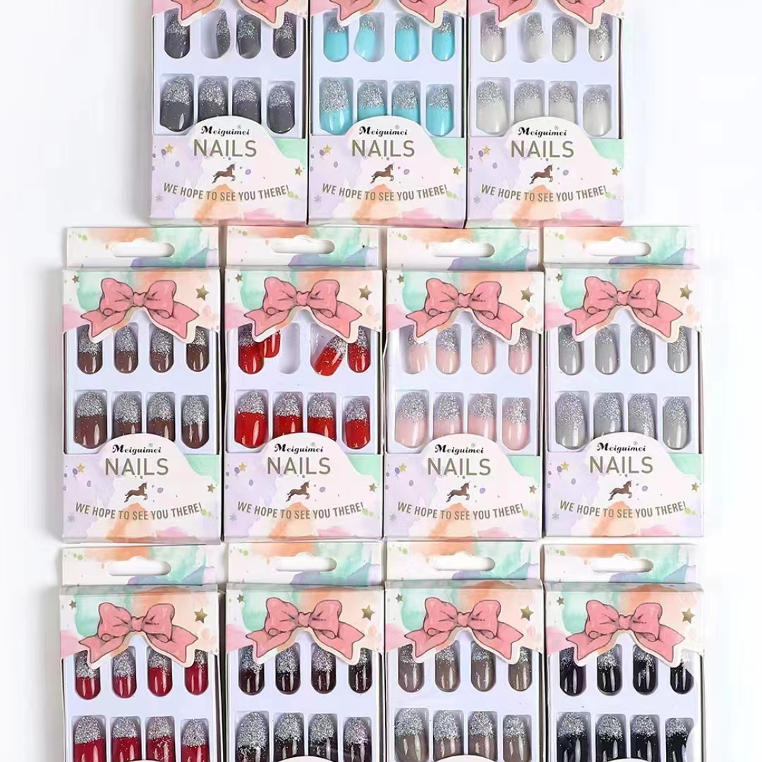 nail sticker nail polish finished morandi color fake nail sticker wearable mid-length round head frosted removable ins style