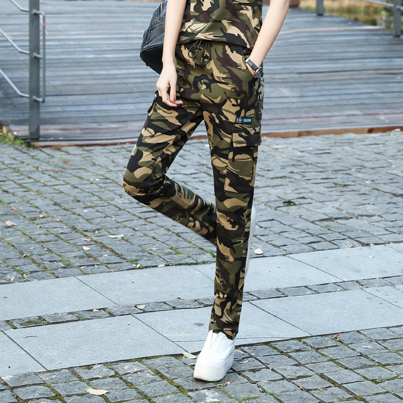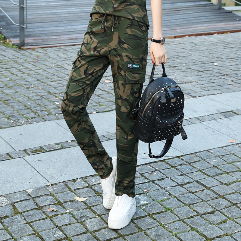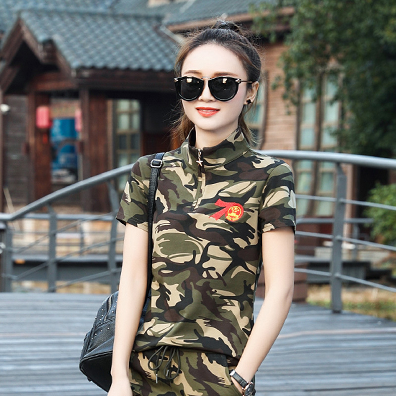 迷彩套装女士夏季立领短袖t恤长裤休闲运动工作服两件套