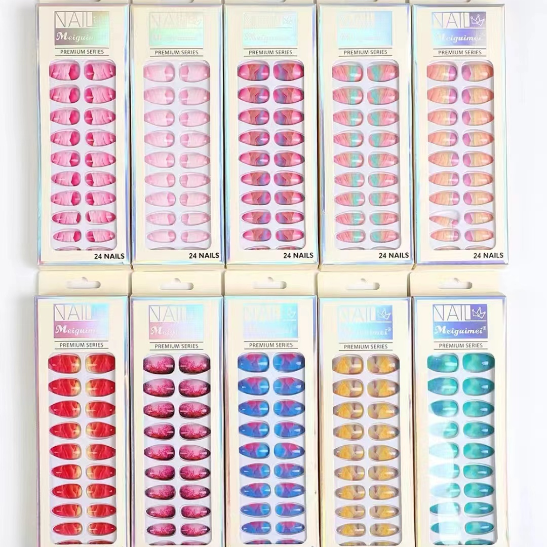 nail sticker nail art product morandi color fake nail sticker wearable mid-length round head frosted removable ins style