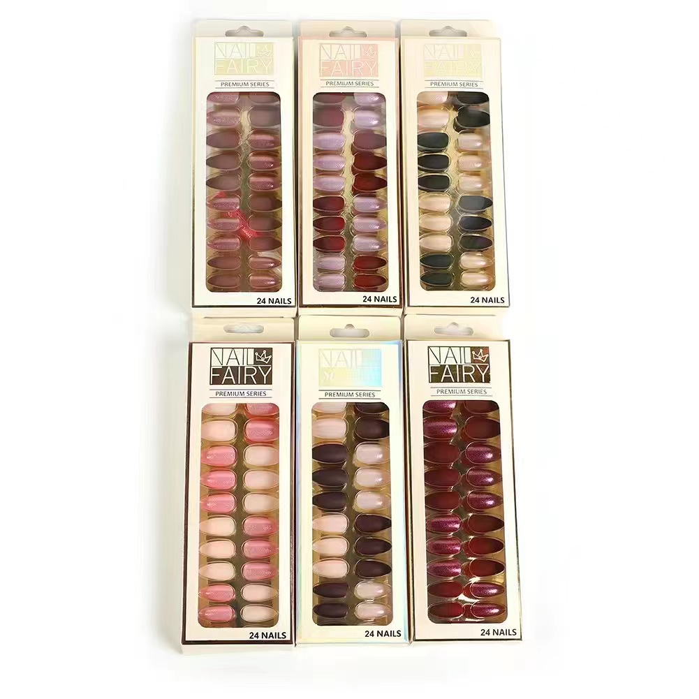 nail sticker nail polish finished morandi color fake nail sticker wearable mid-length round head frosted detachable ins wind
