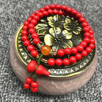 厂家货源朱砂108颗佛珠手串本命年红朱砂貔貅多圈手链饰品批发