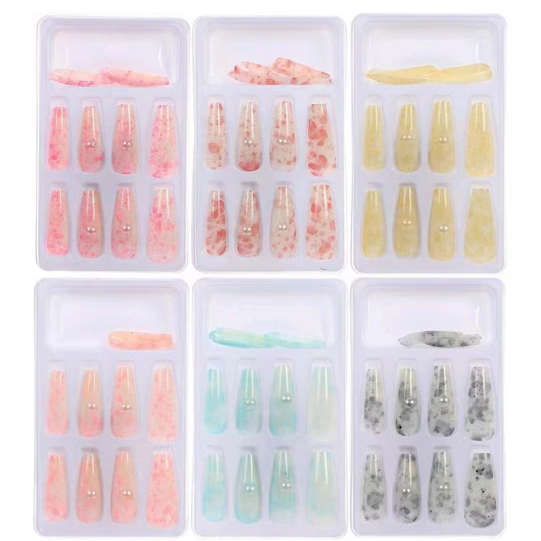 Nail Tip Patch Finished Nail Beauty Morandi Fake Nail Patch Wearable Mid-Length round Head Frosted Removable Ins Style