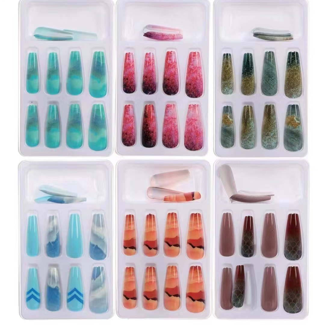 贴甲片美甲成品莫兰迪色假指甲贴穿戴式中长圆头磨砂可拆卸ins风