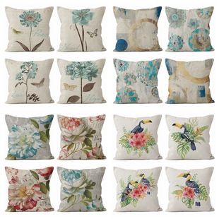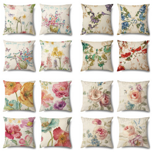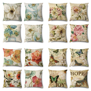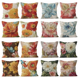 欧式复古温馨花卉厚实亚麻抱枕套办公室午睡靠垫套