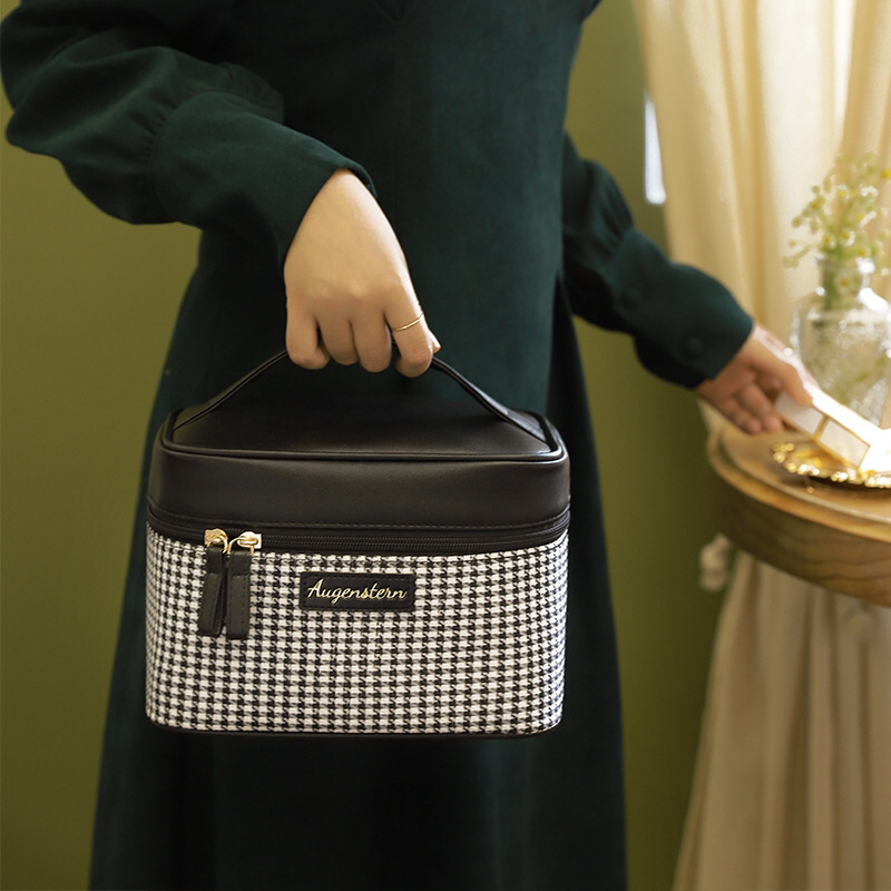 新款PU千鸟格手提化妆包手提化妆箱大容量收纳包化妆品收纳盒