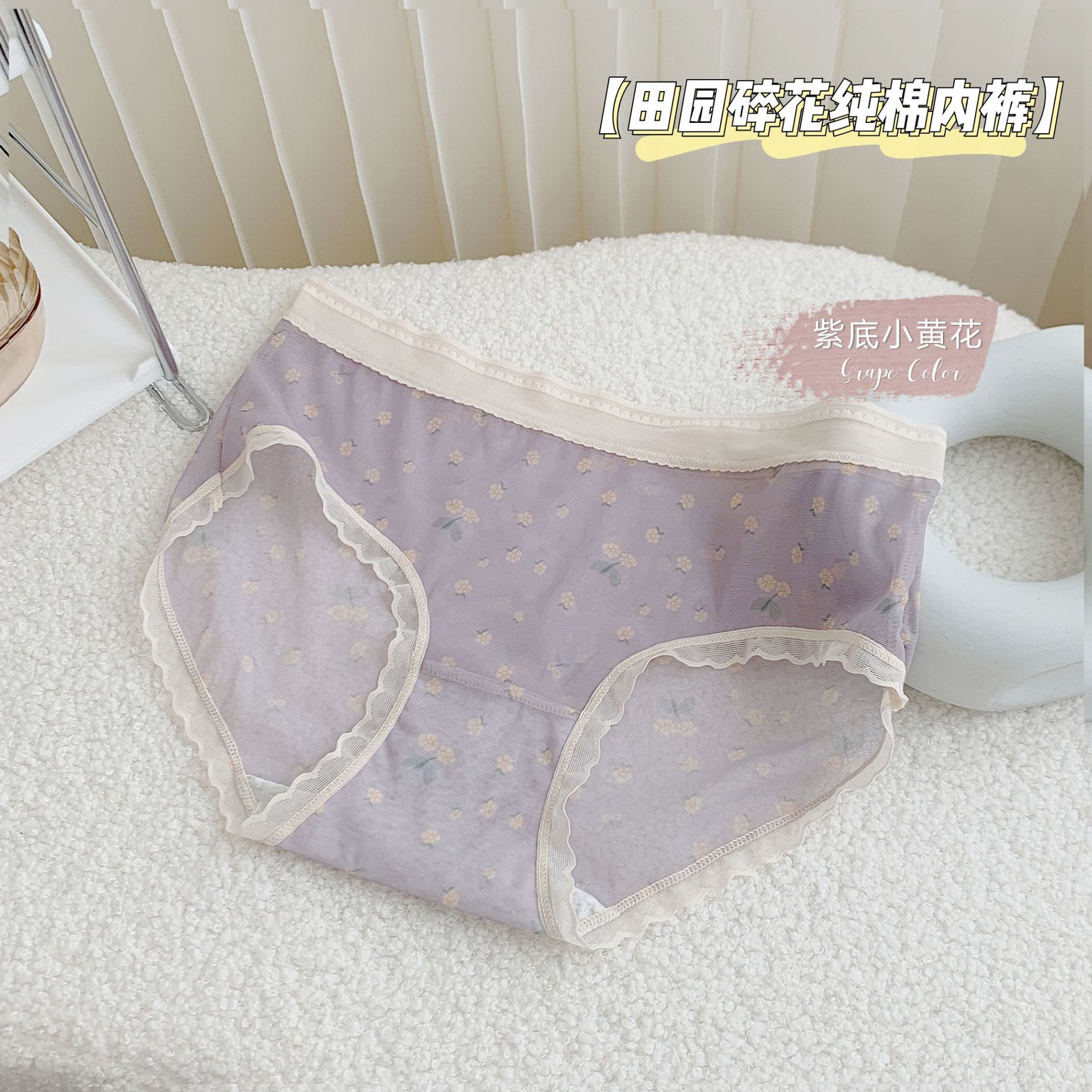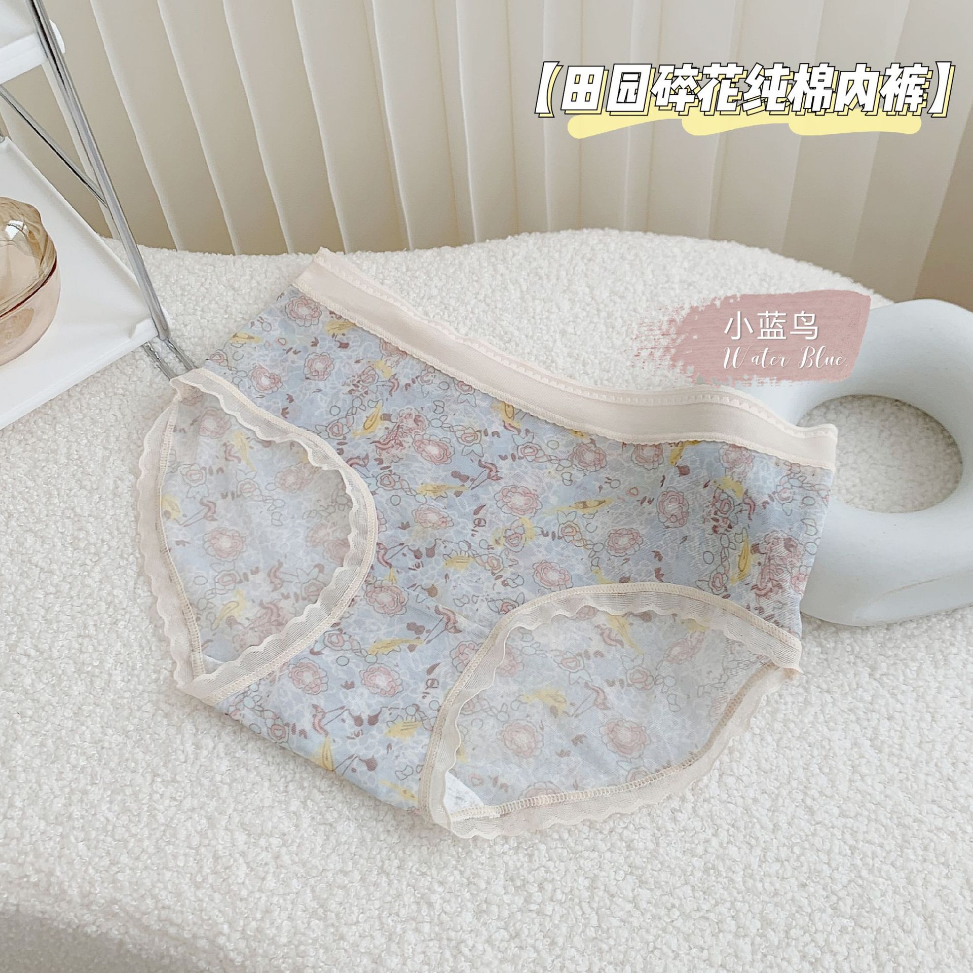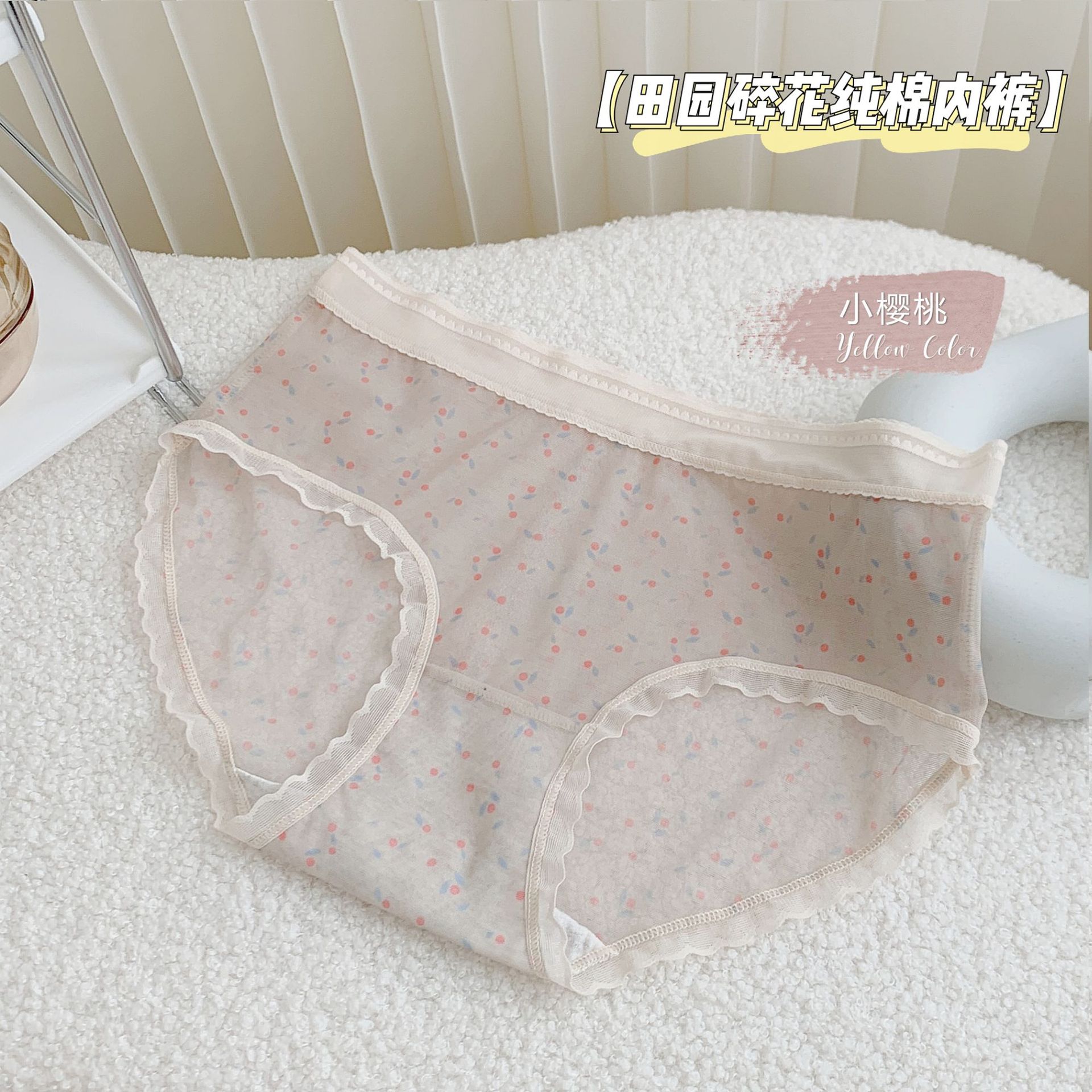 日系小碎花内裤女纯棉裆中腰甜美可爱透气无痕薄款蕾丝少女夏