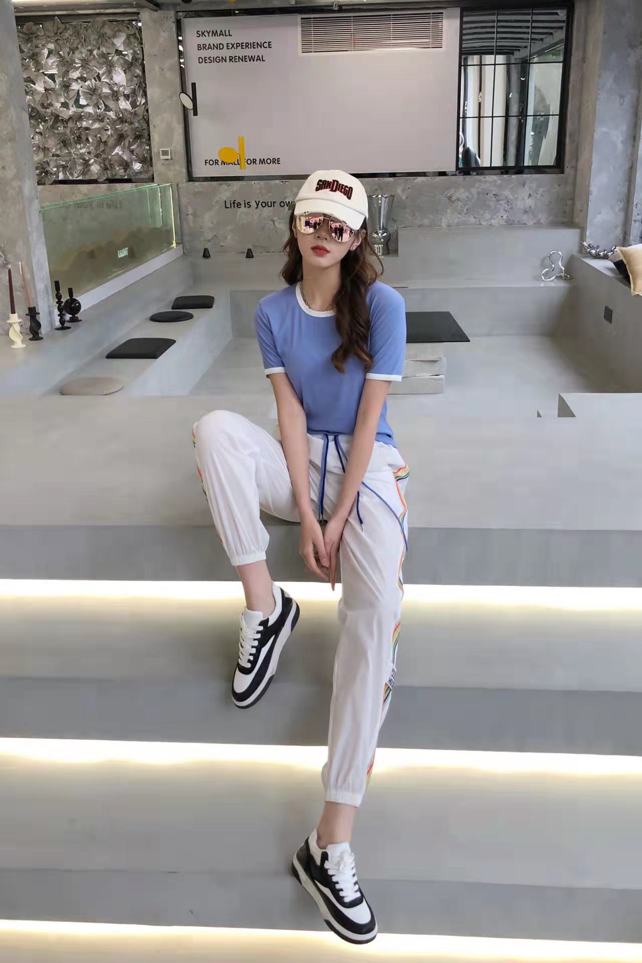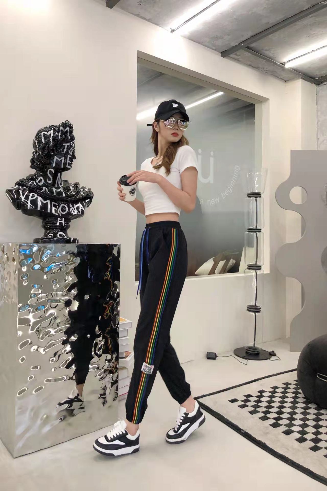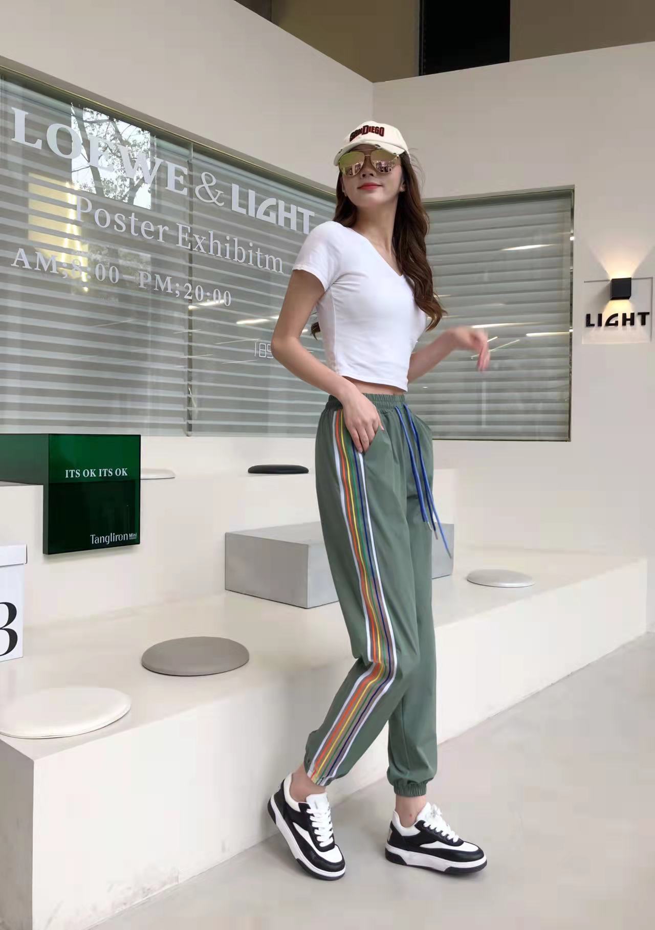 2022夏季彩虹条纹运动裤女冰肤防晒宽松透气健身束脚冰丝九分