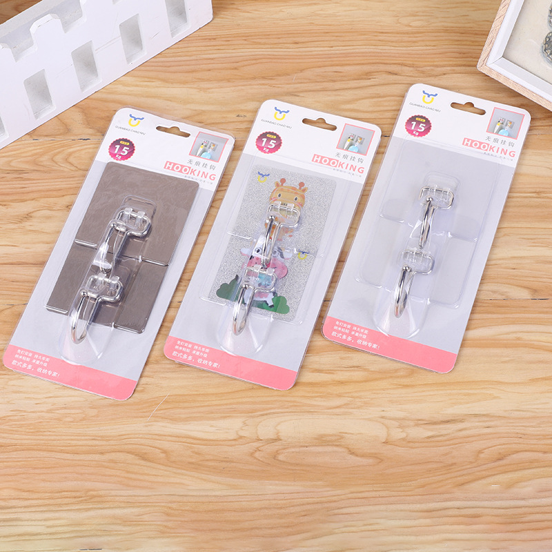 新款彩卡装无痕挂钩防尘商超电商免钉无痕粘钩厂家直销高档包装钩