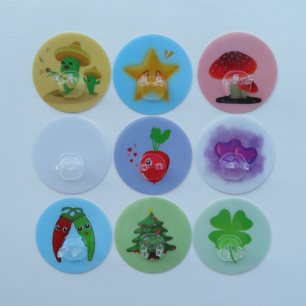 品名: 6.5圆可移胶图案牙刷架 款式: 圆形 装箱:2000个一箱 重量:约3.7克 |
