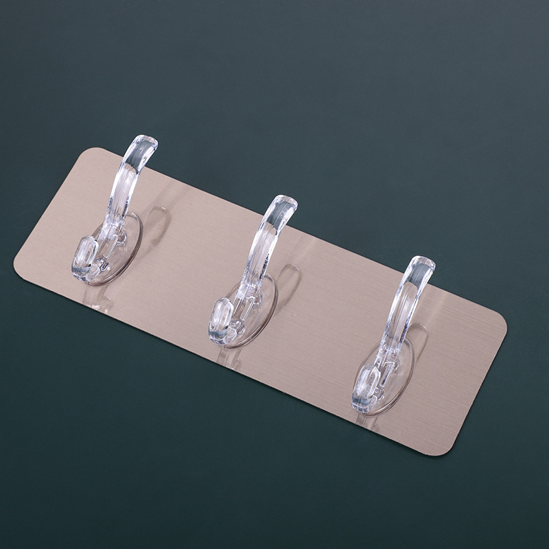 拉丝无痕三排钩衣帽钩浴室免钉连排钩厨房免打孔挂勾墙壁强力粘钩