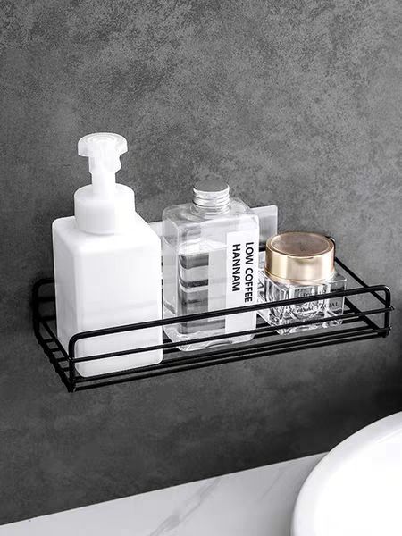 厂家直销无痕铁艺方形黑色置物架强力免打孔不伤墙面文艺风置物架