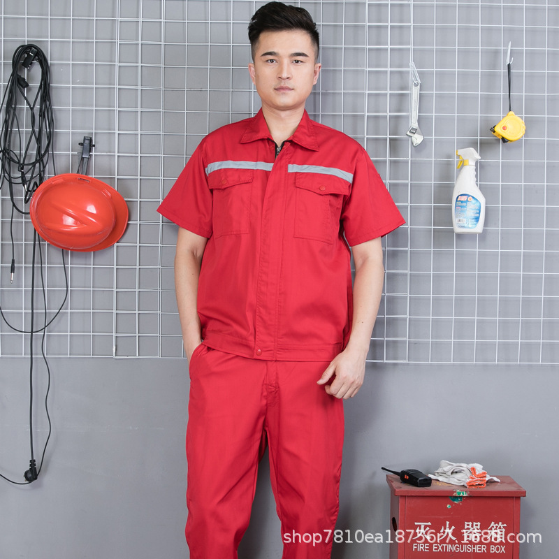 春秋款短袖工作服套装男女车间工装劳保服耐磨机修货运工程工地装