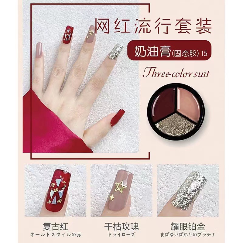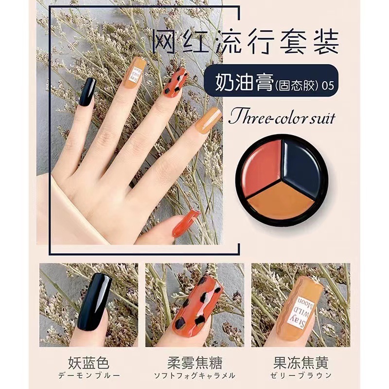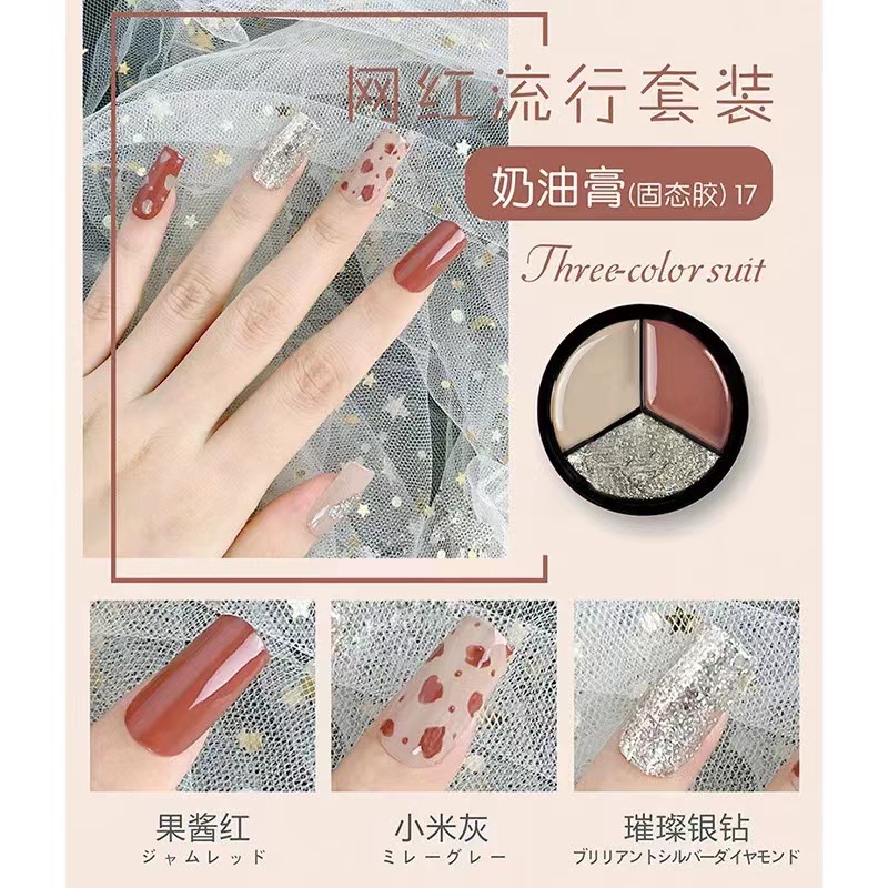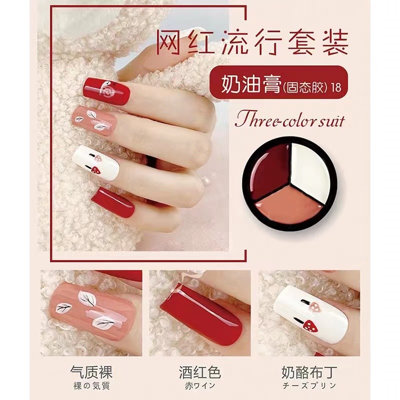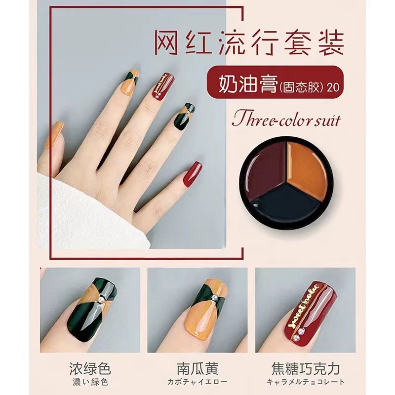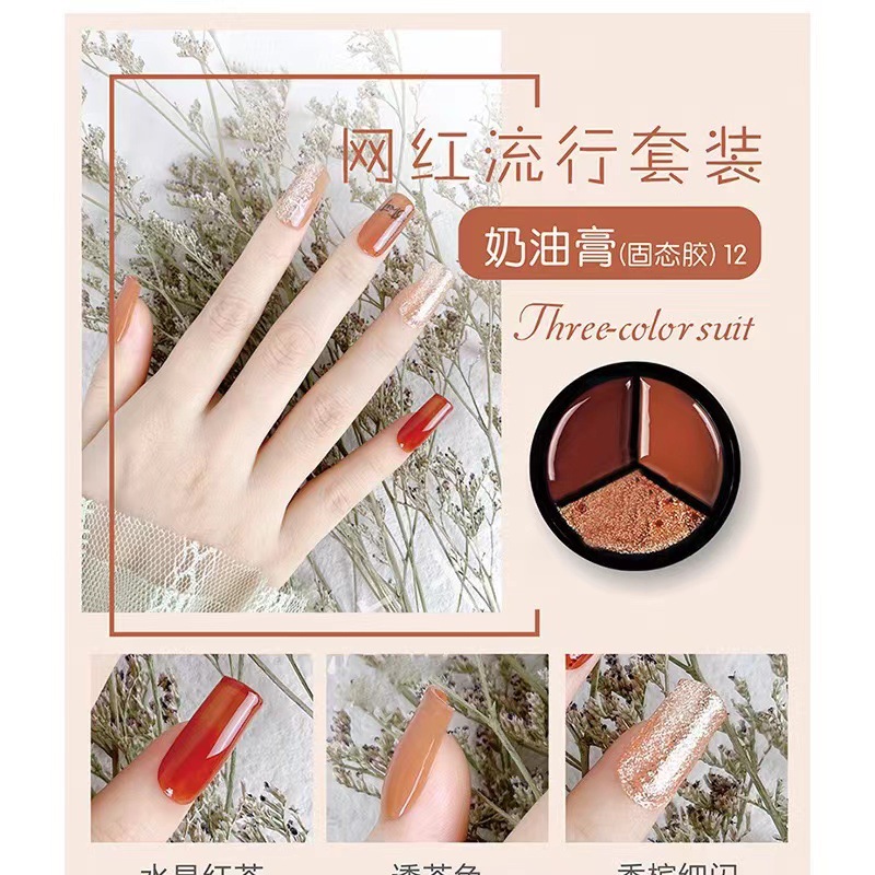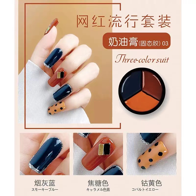 美甲三色固态甲油胶日式罐装胶秋冬季流行色系光疗胶奶油膏甲油胶