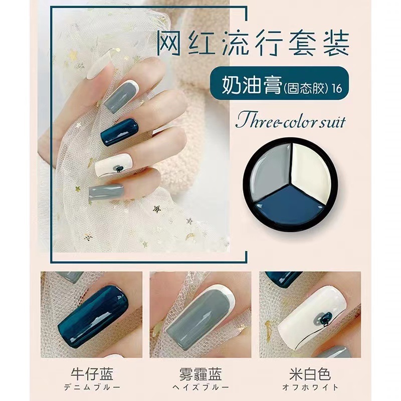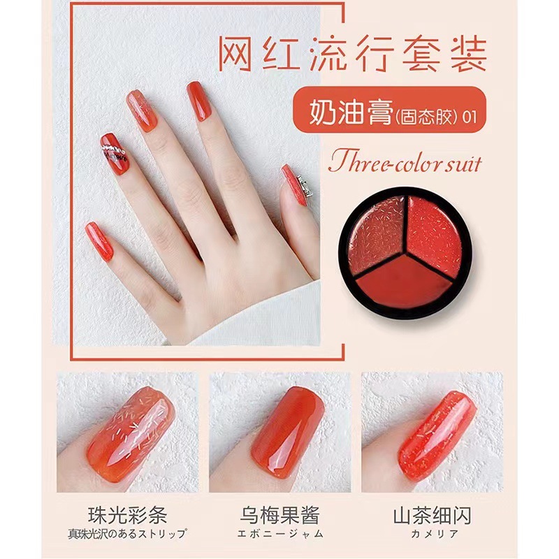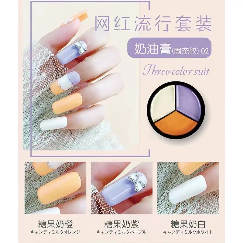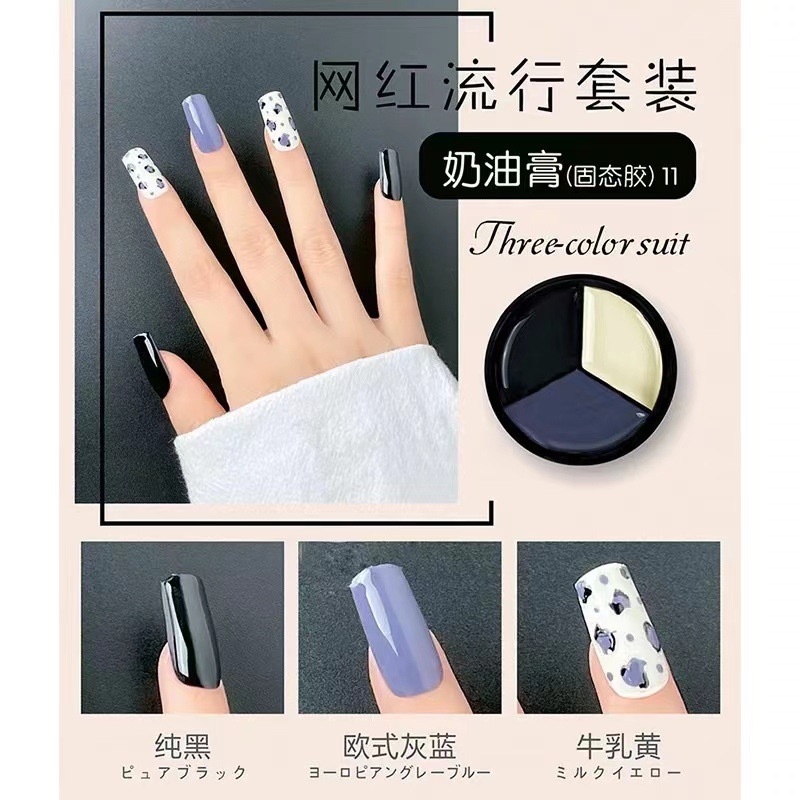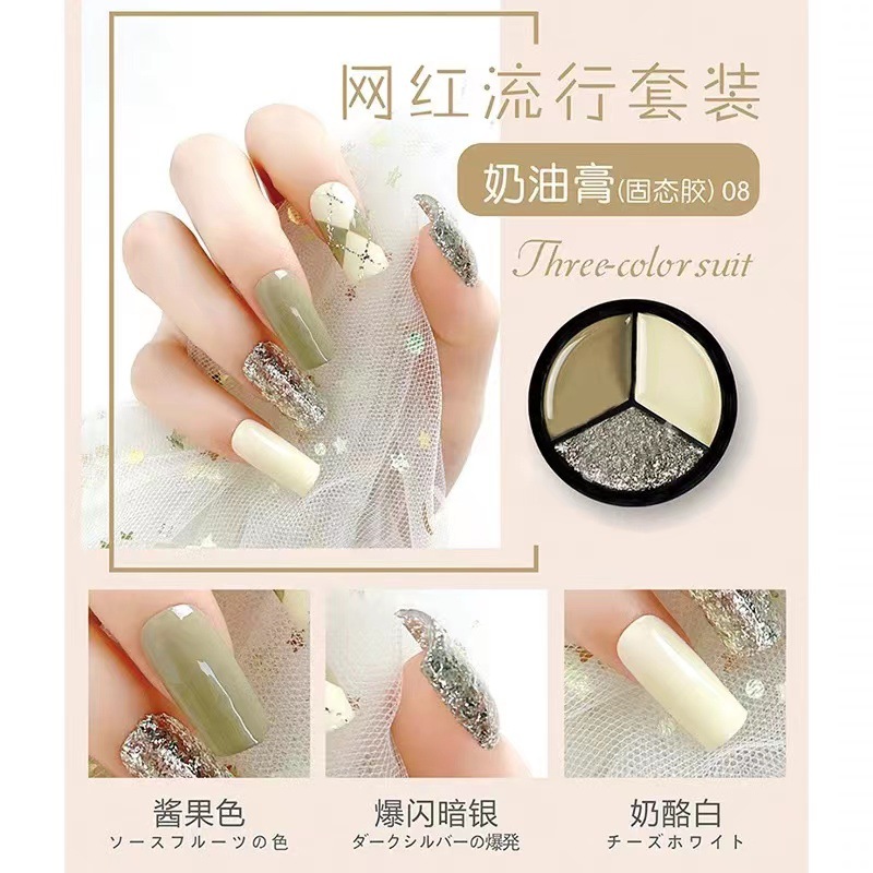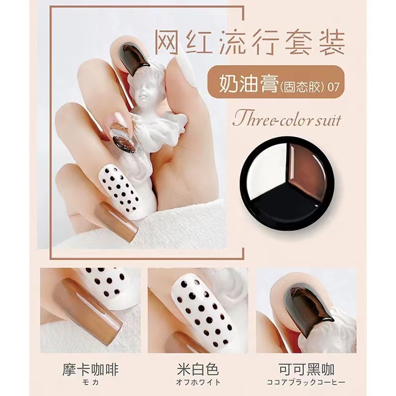 美甲三色固态甲油胶日式罐装胶秋冬季流行色系光疗胶奶油膏甲油胶