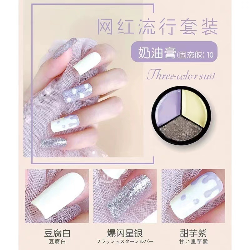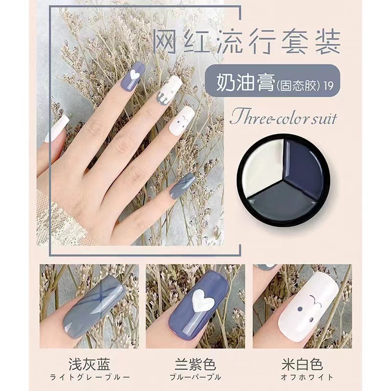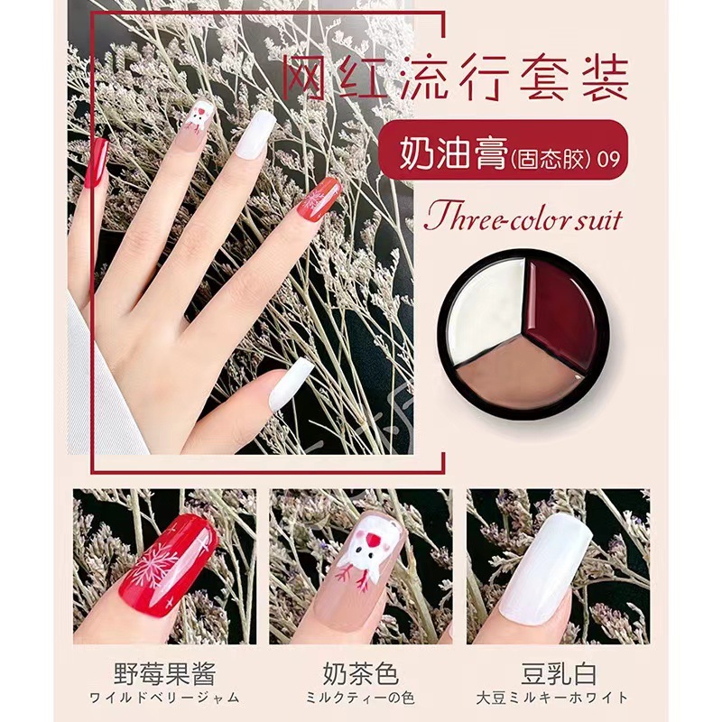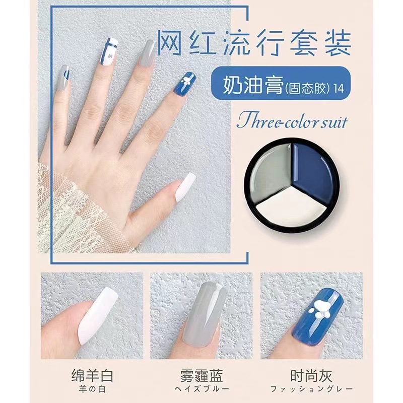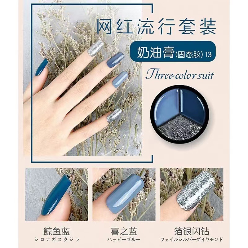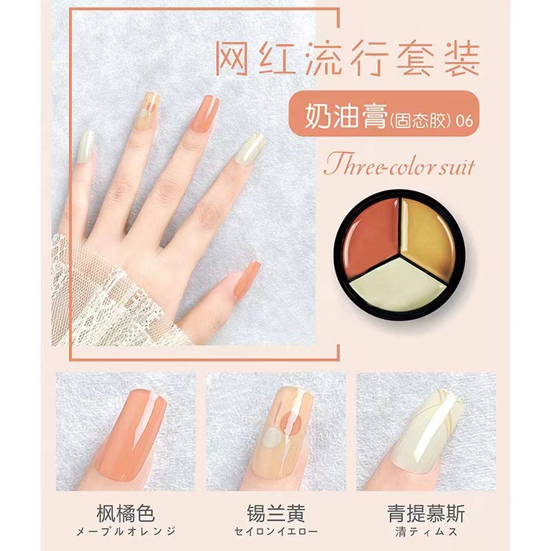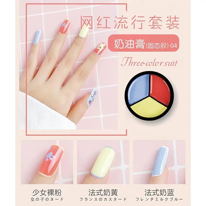 美甲三色固态甲油胶日式罐装胶秋冬季流行色系光疗胶奶油膏甲油胶