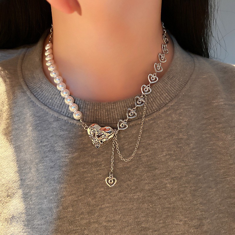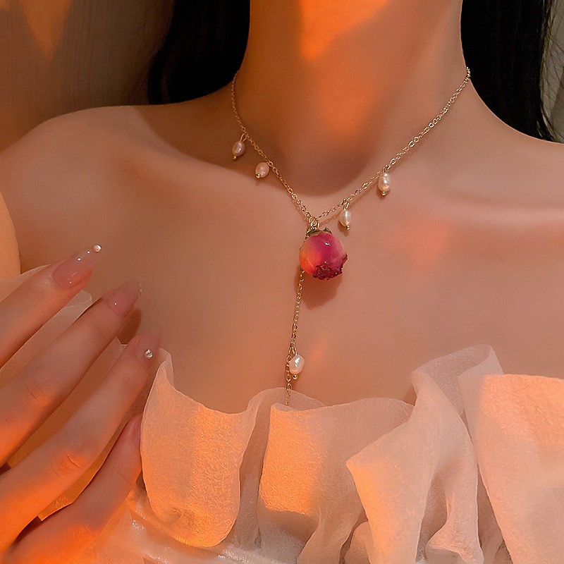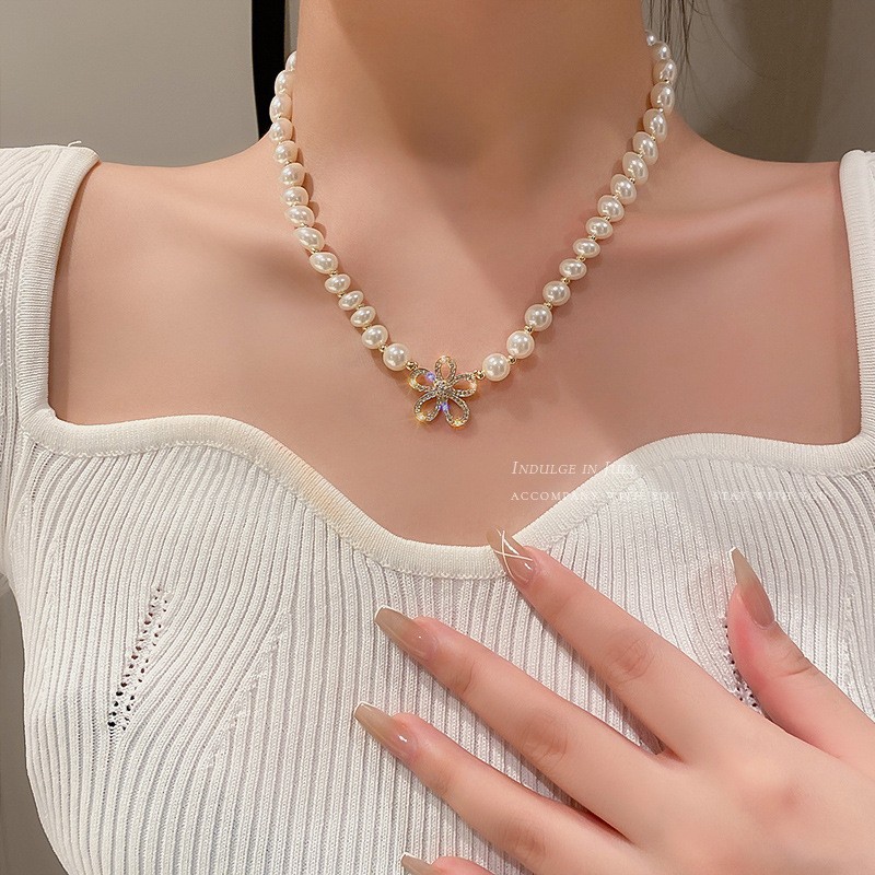 韩国多层珍珠镶钻流苏颈链网红气质设计感蕾丝蝴蝶锁骨链花朵项链