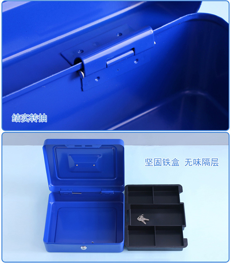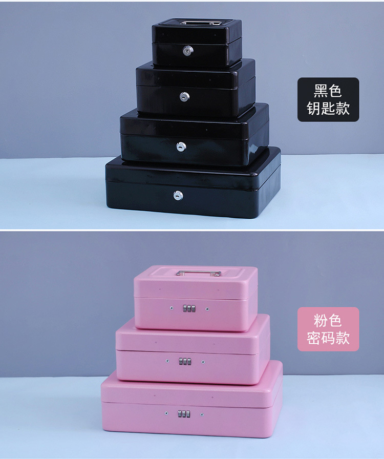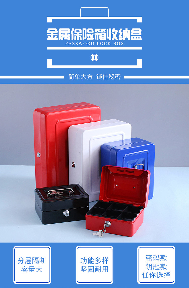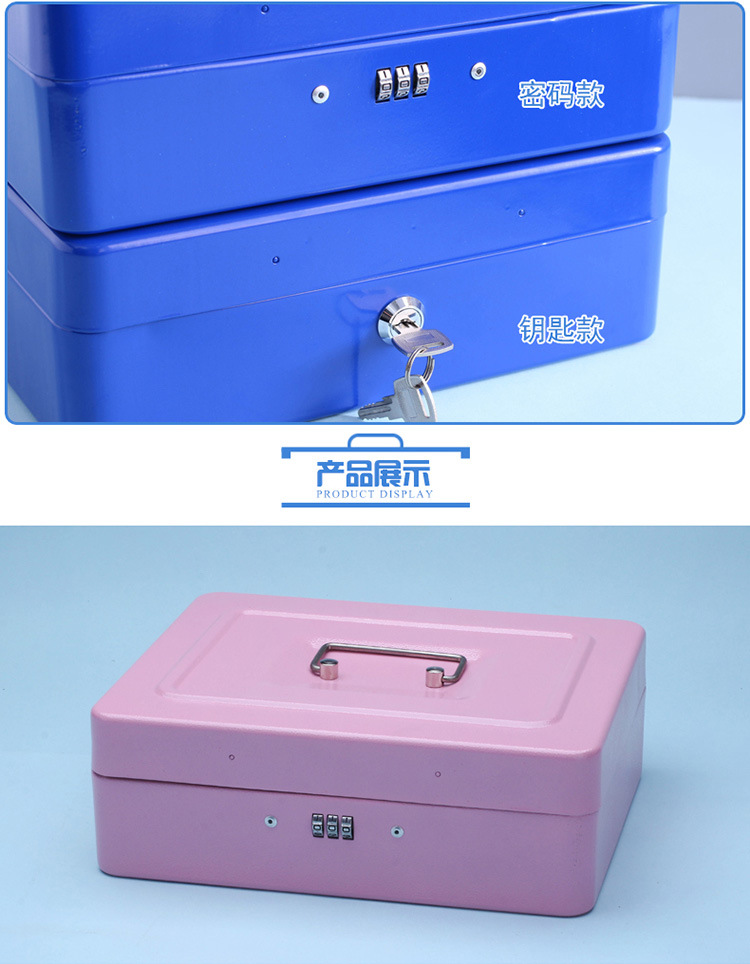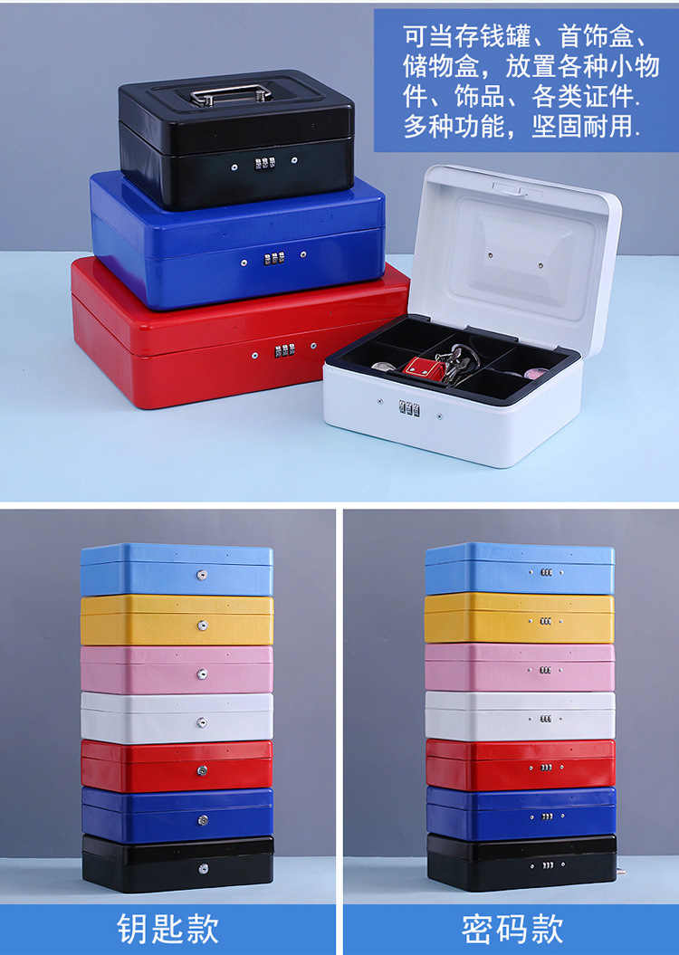 中号带锁保险置物盒 金属手提化妆品生活用品收纳盒铁盒