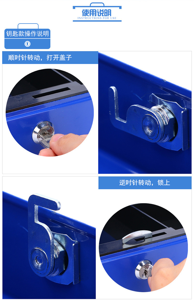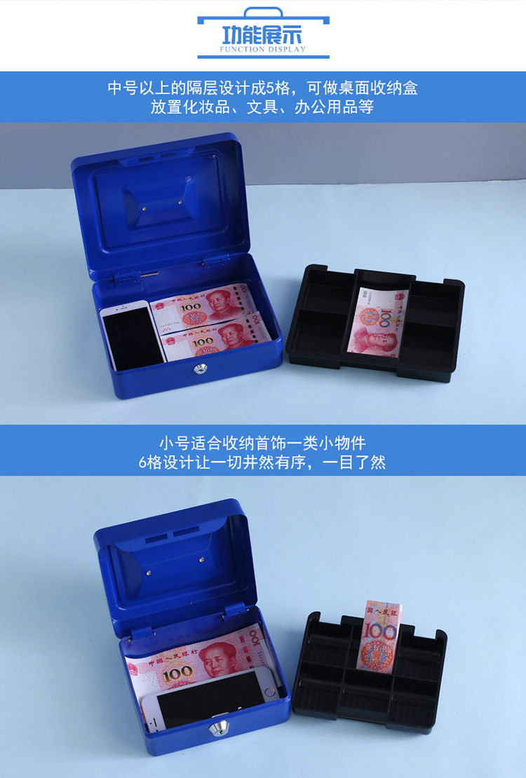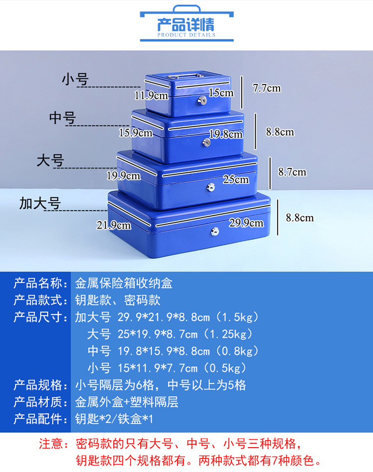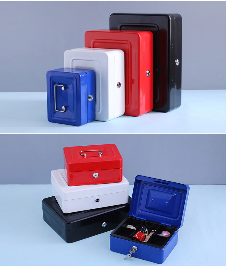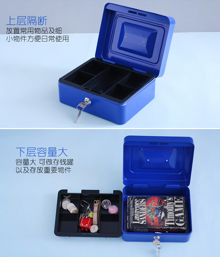 中号带锁保险置物盒 金属手提化妆品生活用品收纳盒铁盒