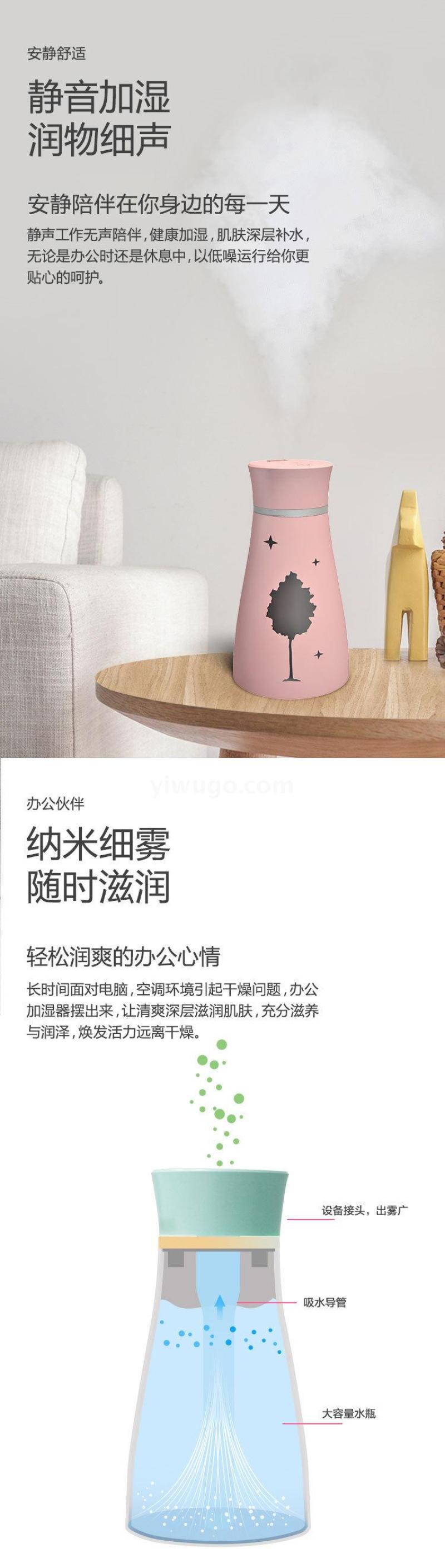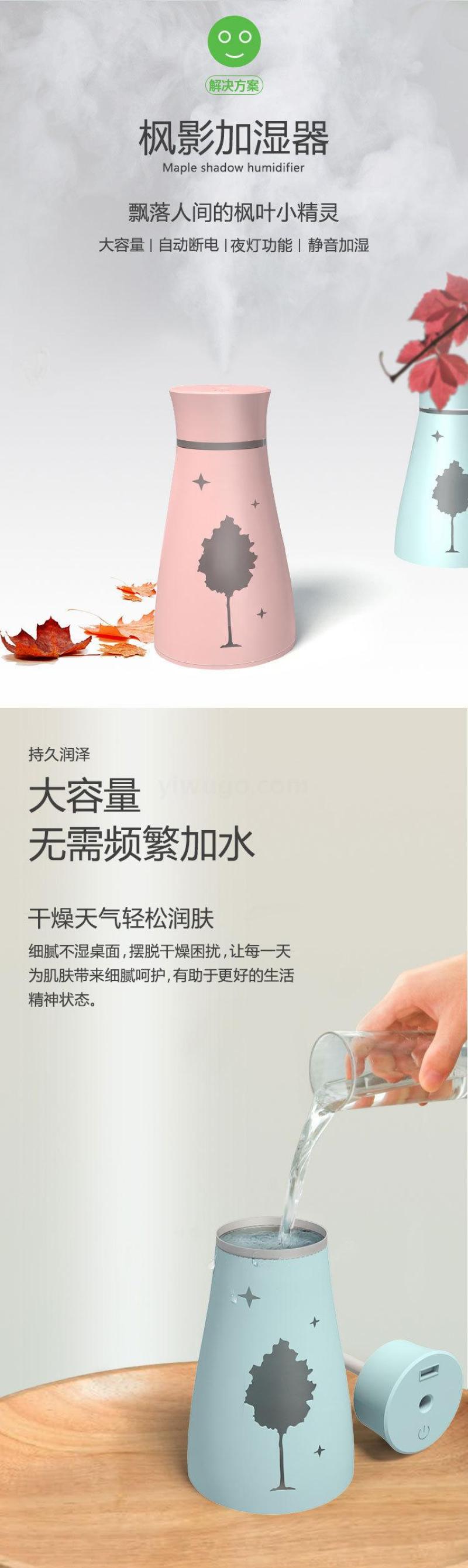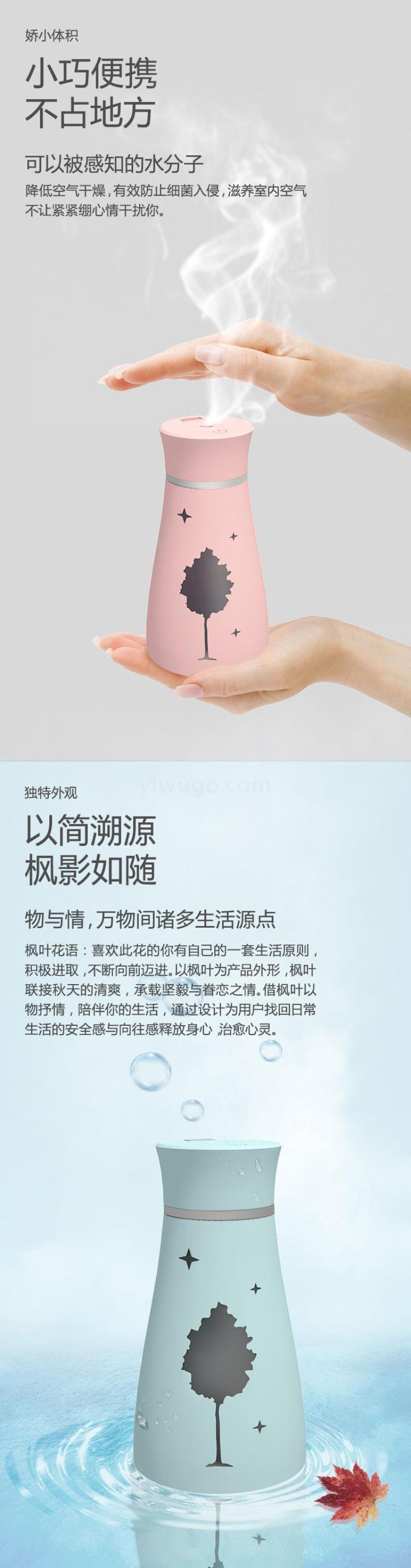 创意新款枫影加湿器 迷你USB北欧风格喷雾仪 桌面加湿补水仪器