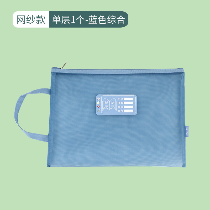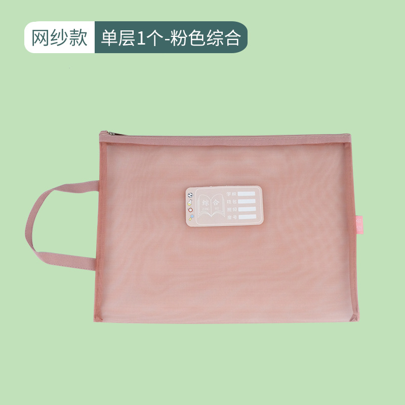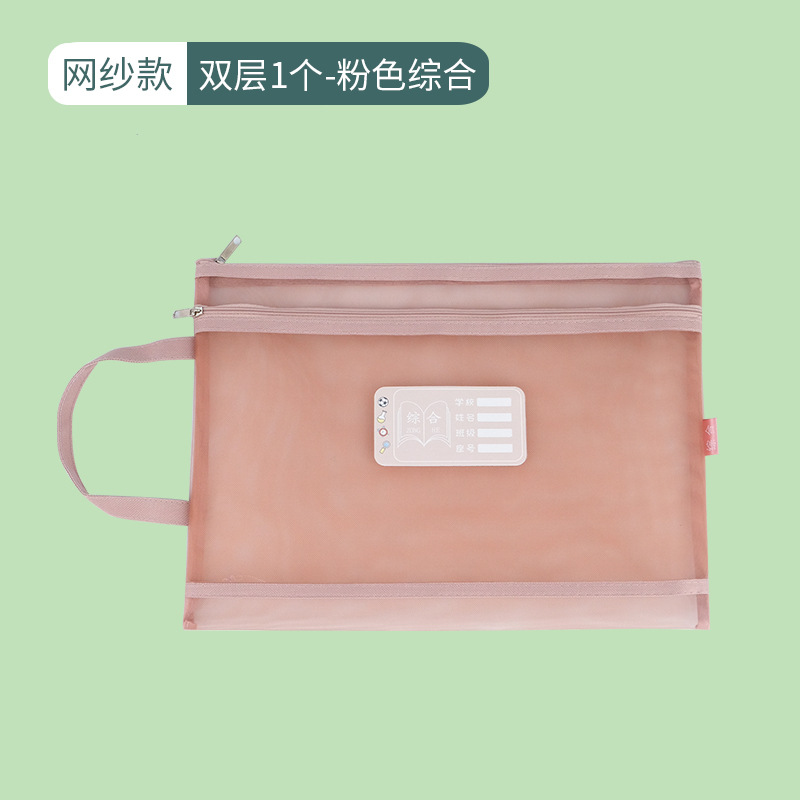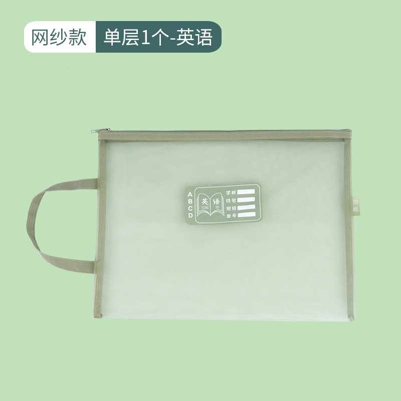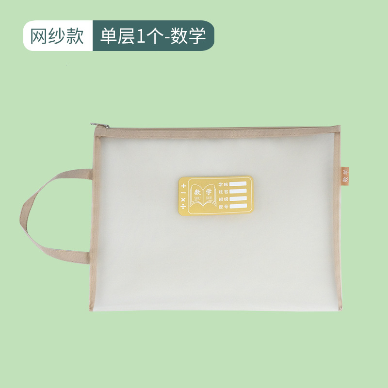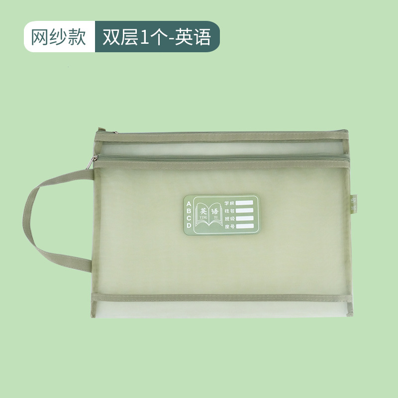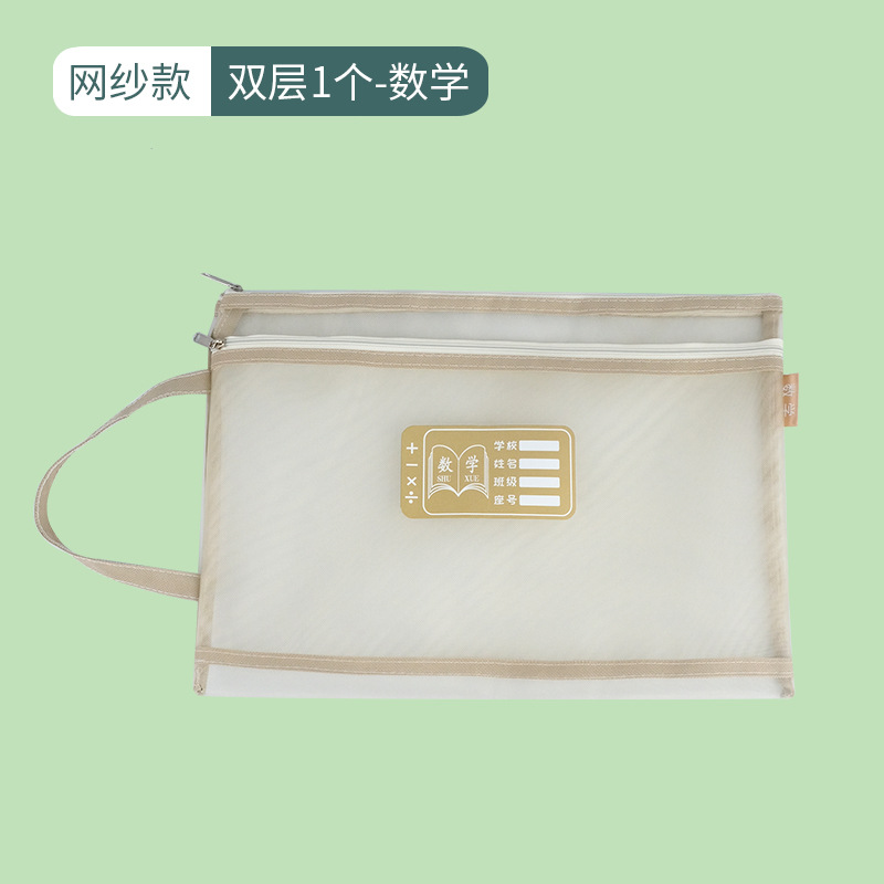 莫兰迪色学科科目分类文件袋A4网纱双层拉链作业袋小学生装课本袋