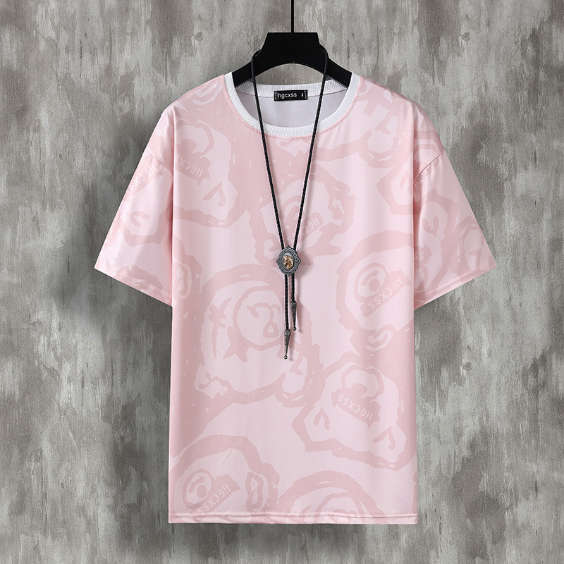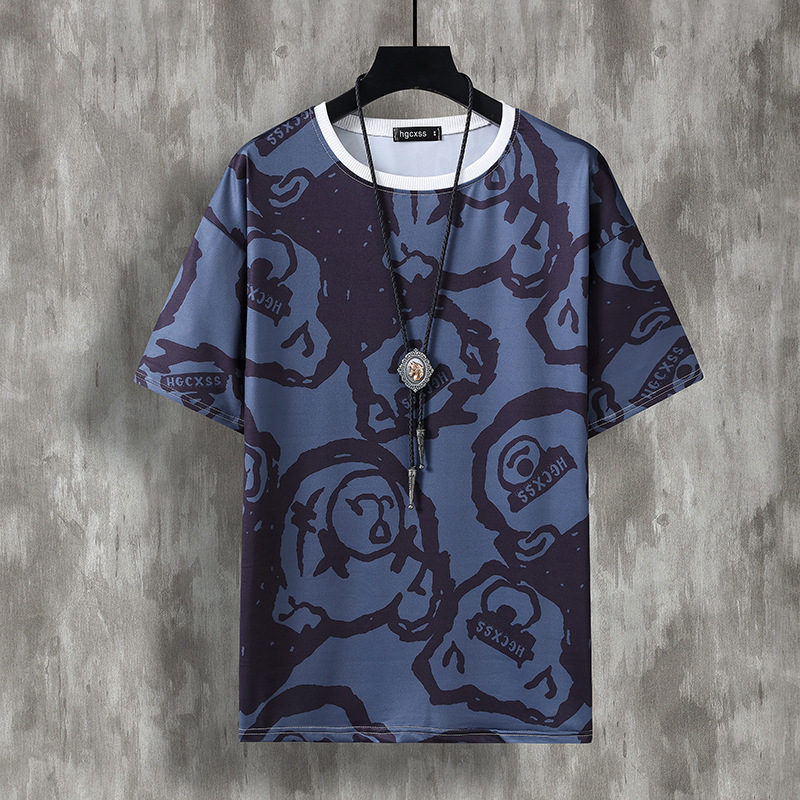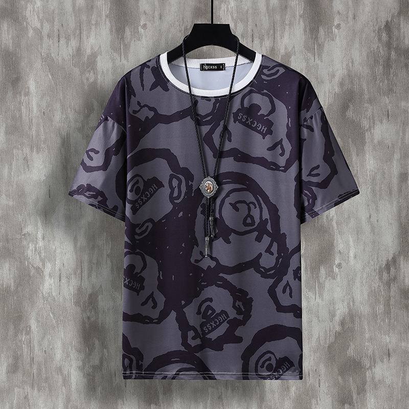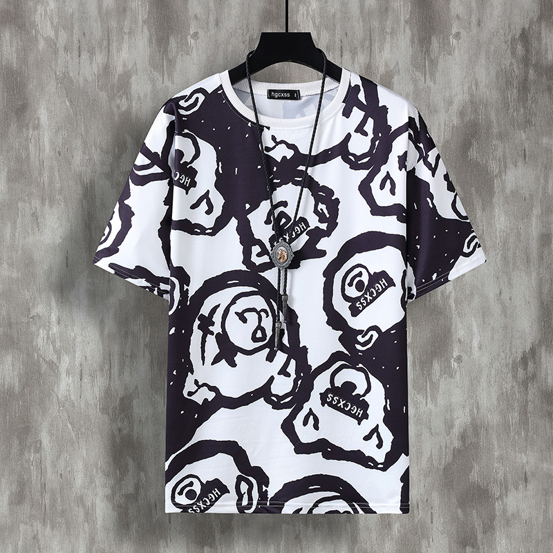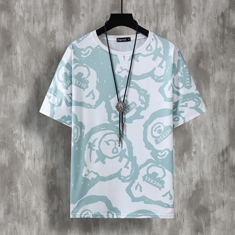 街头风小熊满印短袖T恤男潮牌复古宽松休闲体恤个性帅气学生夏装