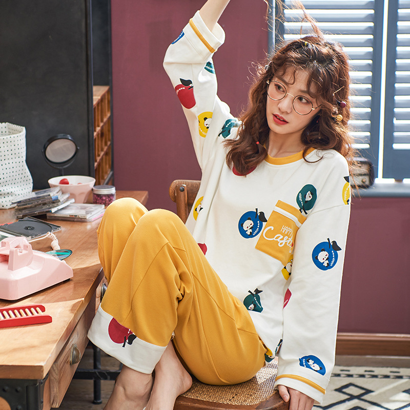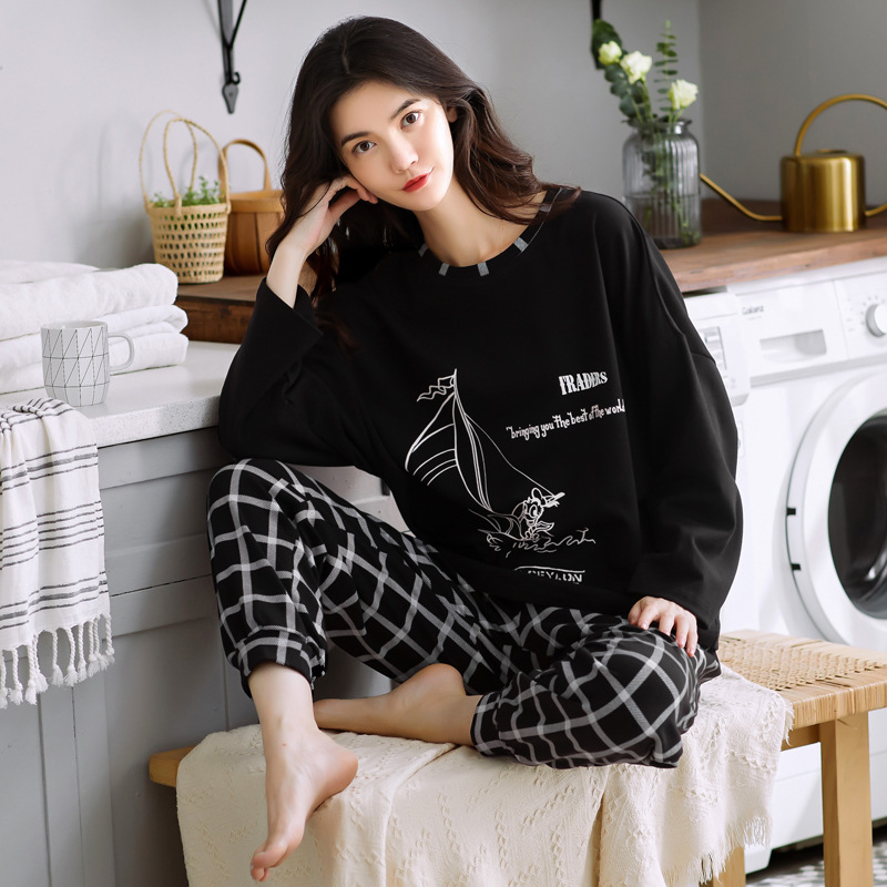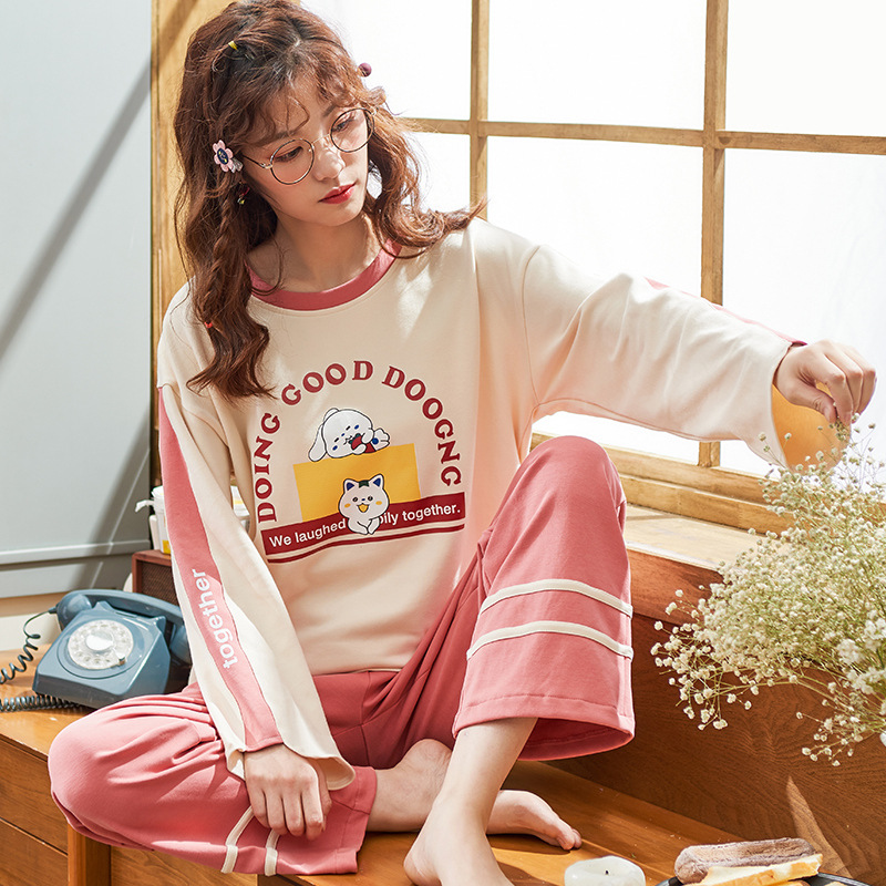 女士睡衣女秋冬长袖长裤睡衣套装新品一件代发春秋家居服女纯棉质