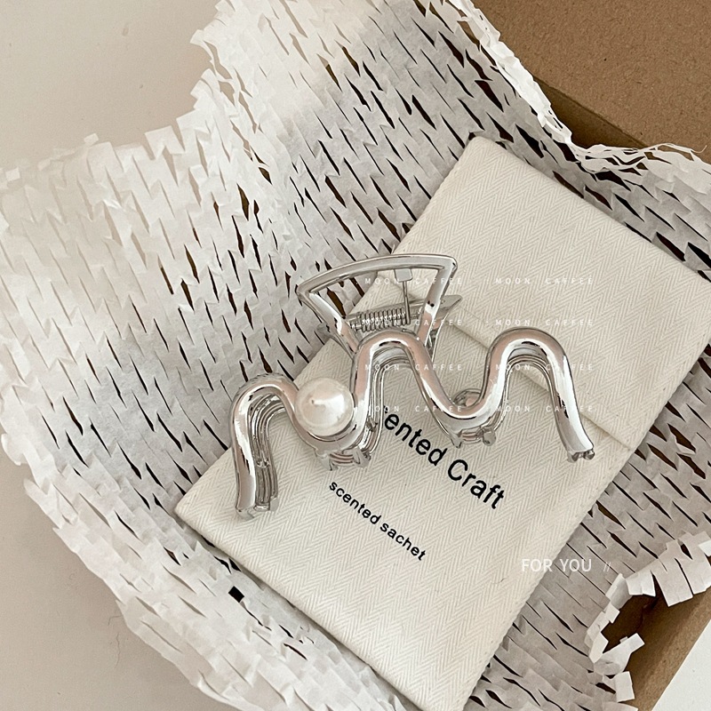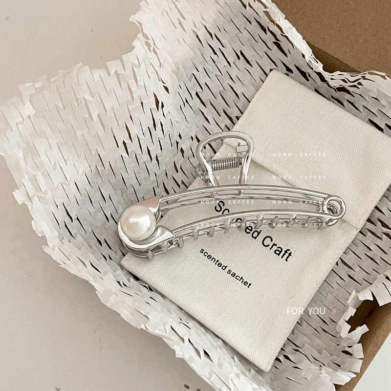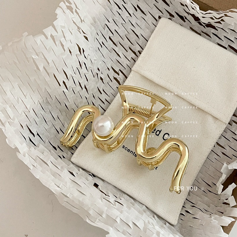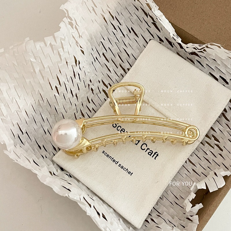 设计感小众金属冷淡风珍珠抓夹马尾夹发抓鲨鱼夹网红时尚港风发夹