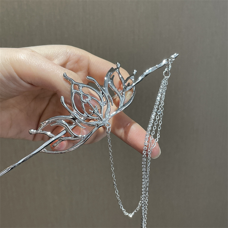银色镂空莲花流苏发簪小众液态金属中式簪子仙酷暗黑国风发钗新
