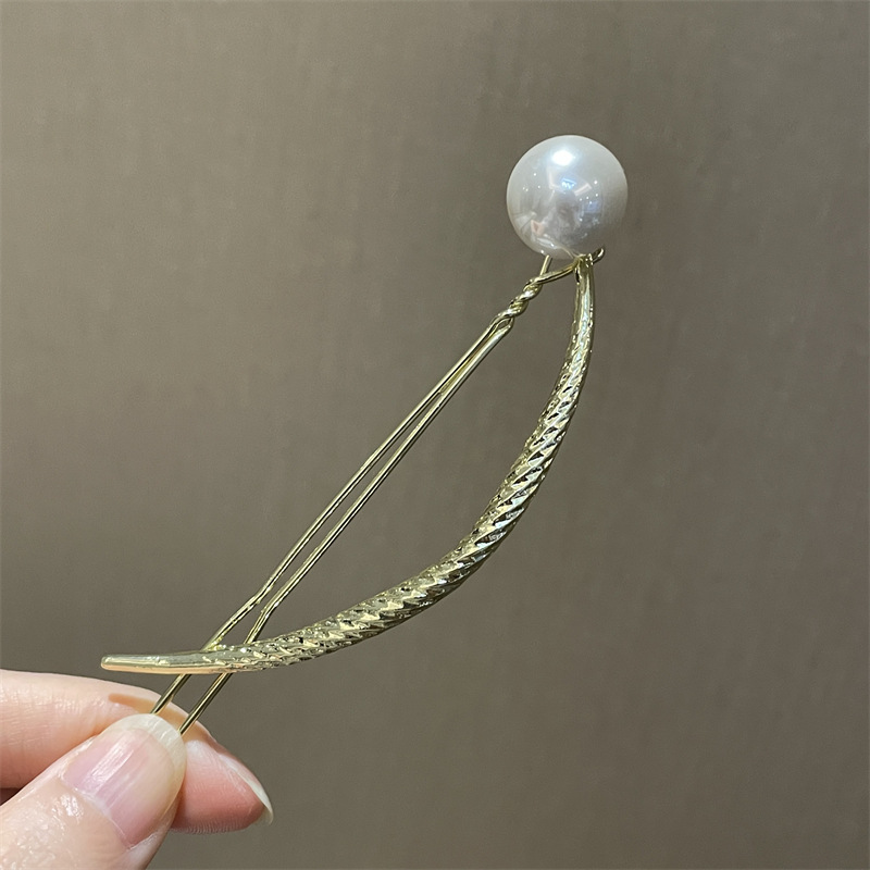 韩国珍珠款弧形发夹弹簧夹青蛙扣发夹发饰品女抓夹发夹发饰