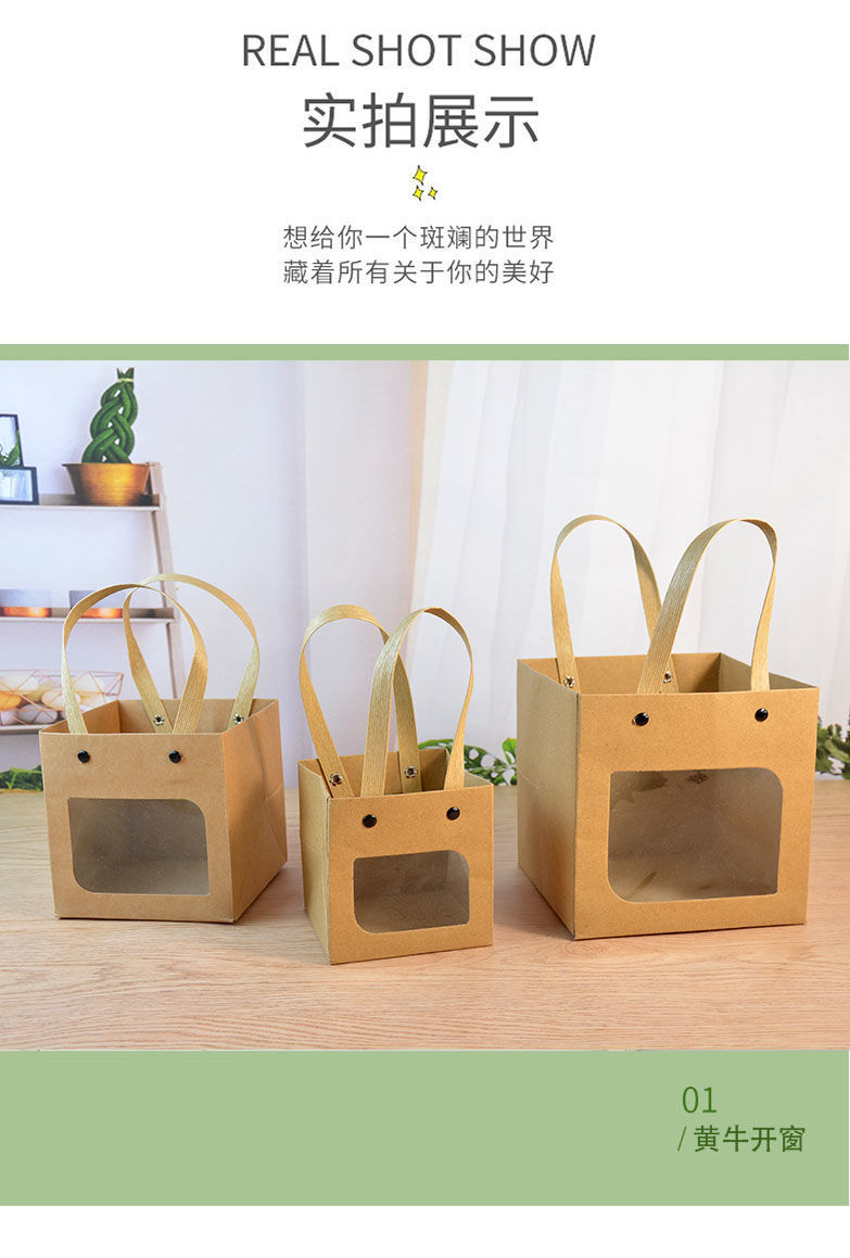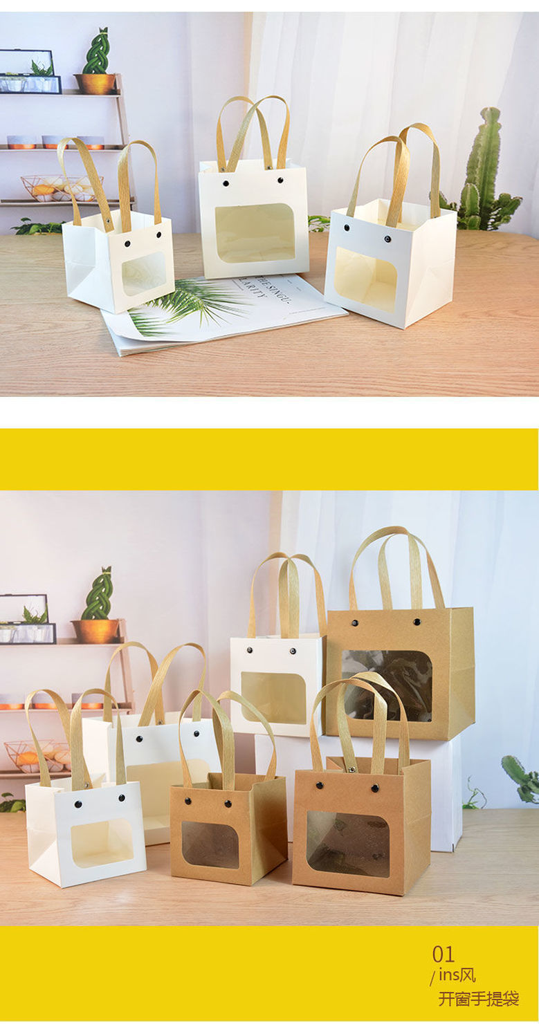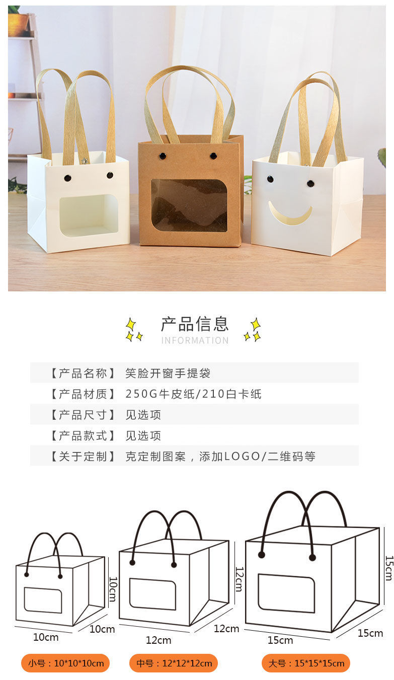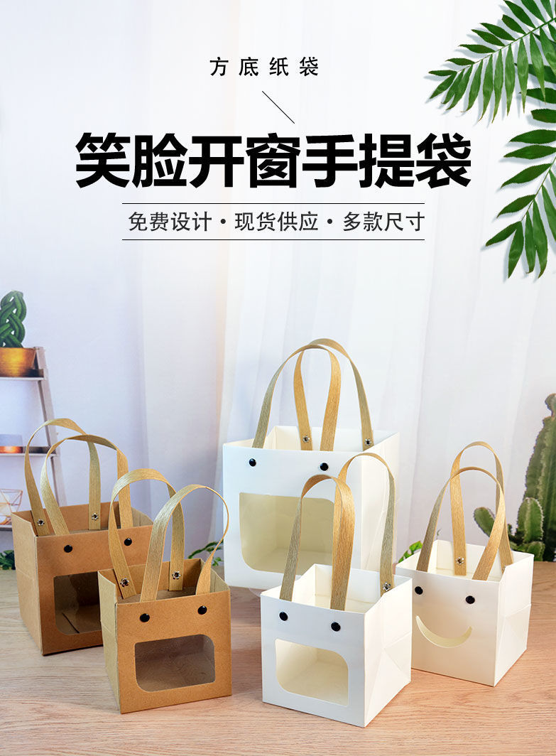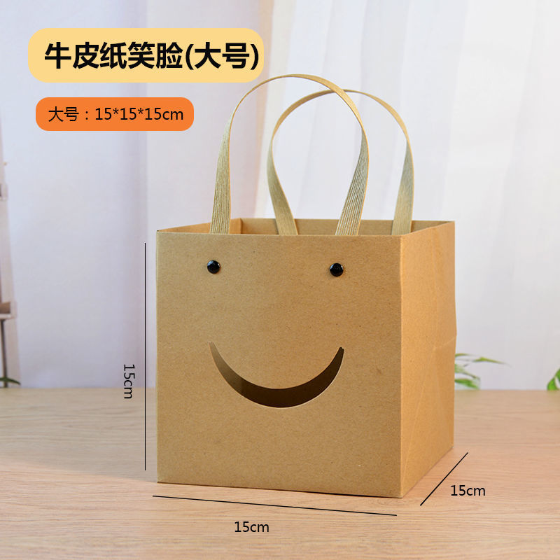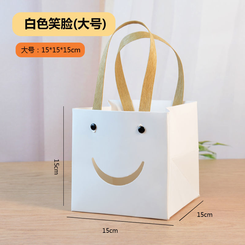 网红笑脸方袋多肉花艺手提纸袋正方形礼品袋儿童节礼物包装袋小号