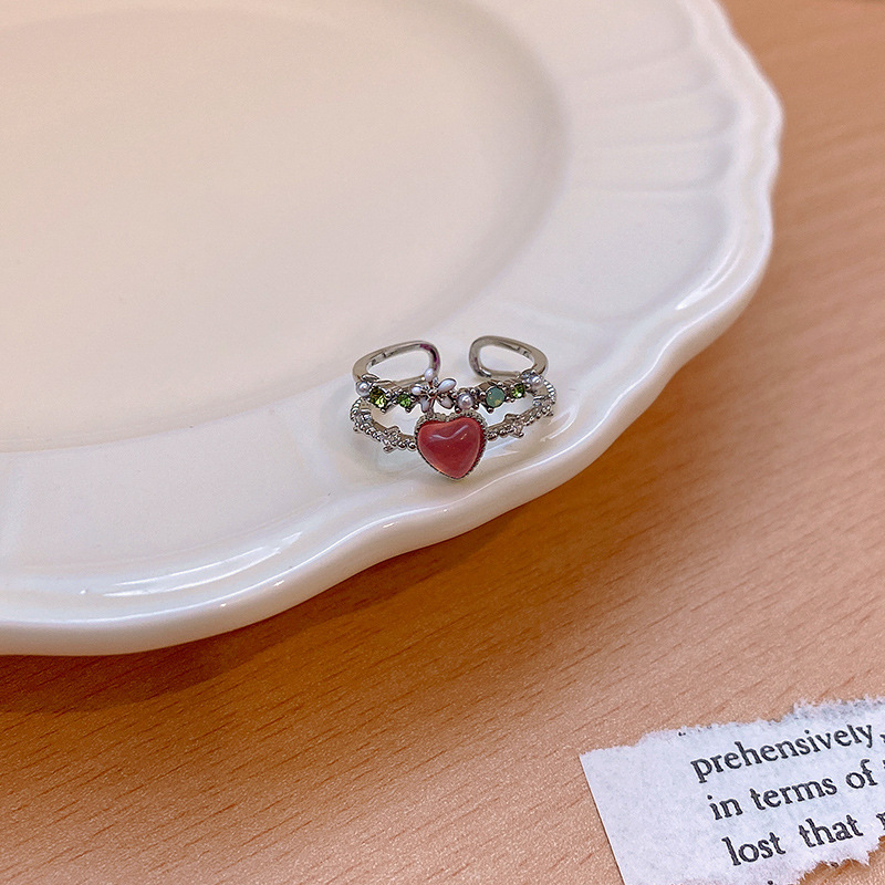 饰品微镶水晶锆石珍珠戒指女开口可调节甜美法式花朵指环手饰批发