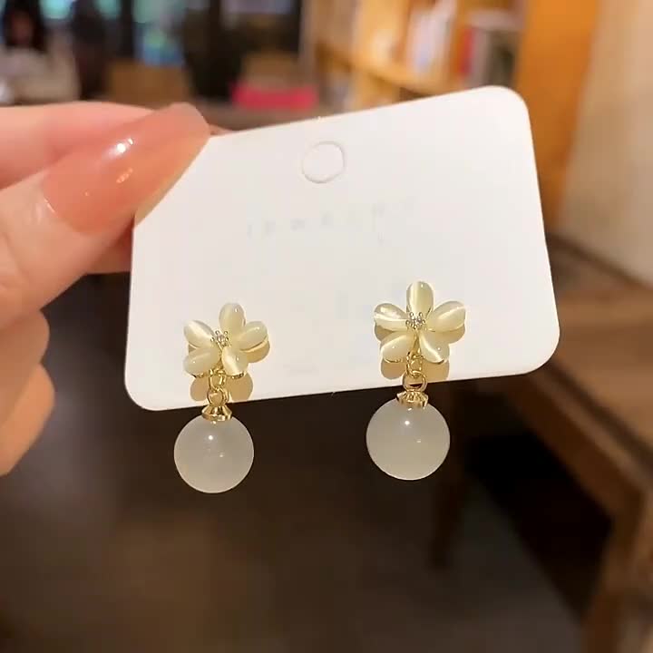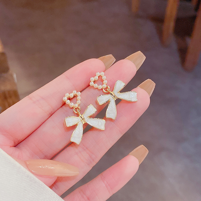 饰品S925银针人鱼珍珠微镶蝴蝶结耳环轻奢小众高级设计感爱心耳钉